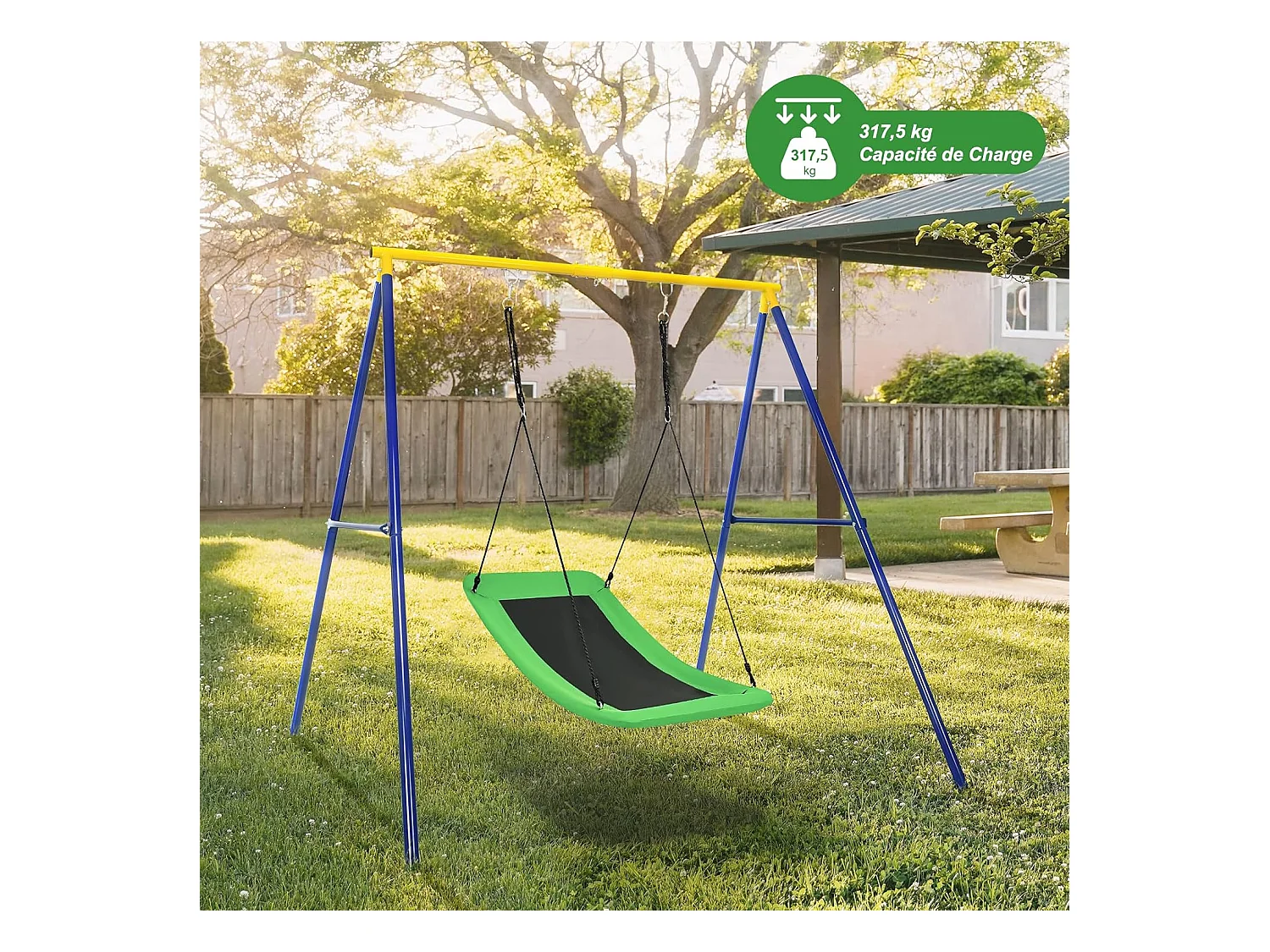 Balançoire Nid d'Oiseau Extérieur Rectangulaire 83 x 155 cm en Tissu et velours Oxford avec Cordes de Réglables Charge Max 120KG Vert