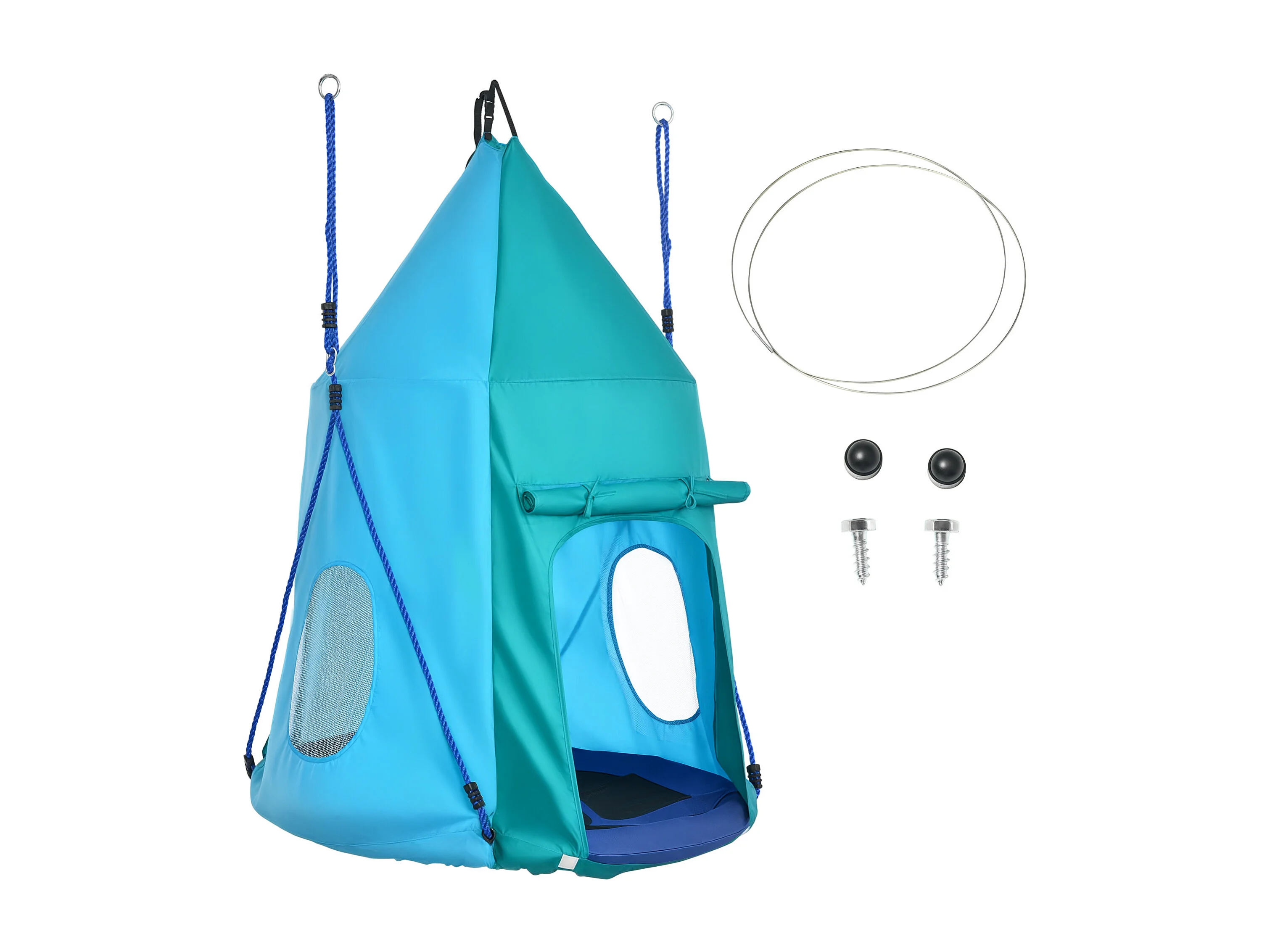 Balançoire nid d'oiseau ronde balançoire panier Ø 1,1 x 1,5H m - tente amovible incluse - accessoires inclus bleu
