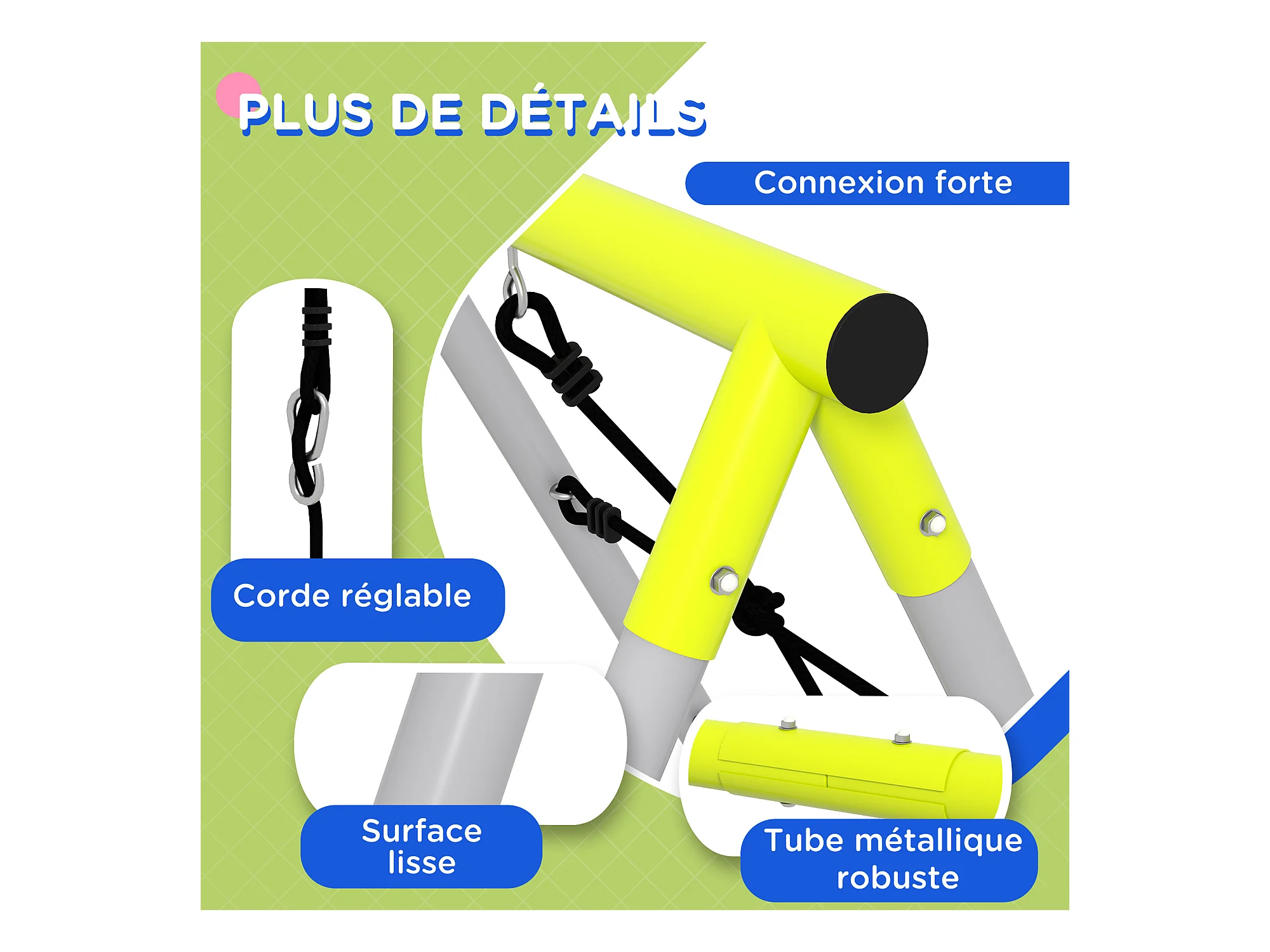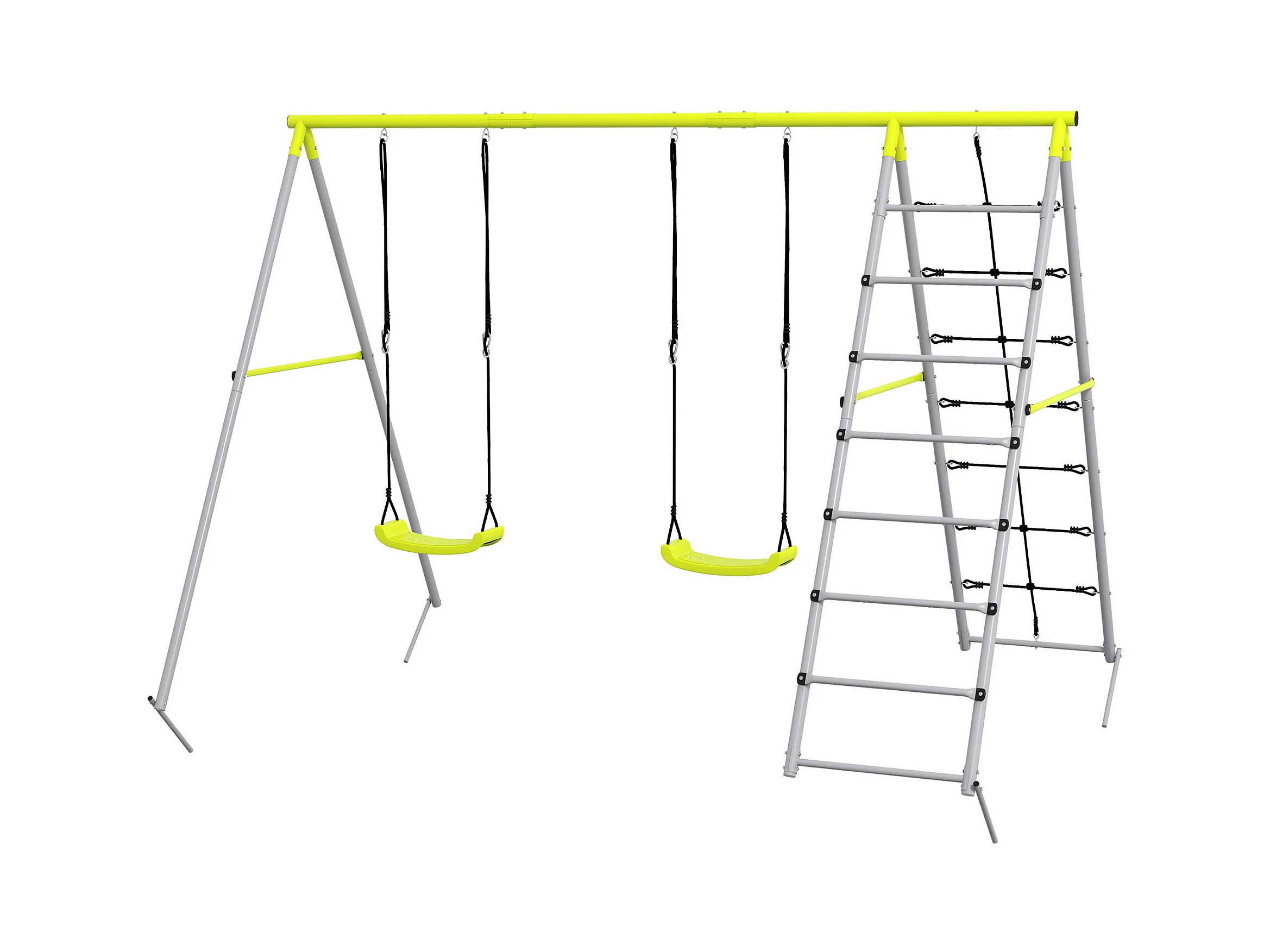 Balançoire portique 4 agrès - 2 balançoires, 2 échelles - dim. 2,6L x 1,85l x 1,8H m - métal époxy PE gris vert