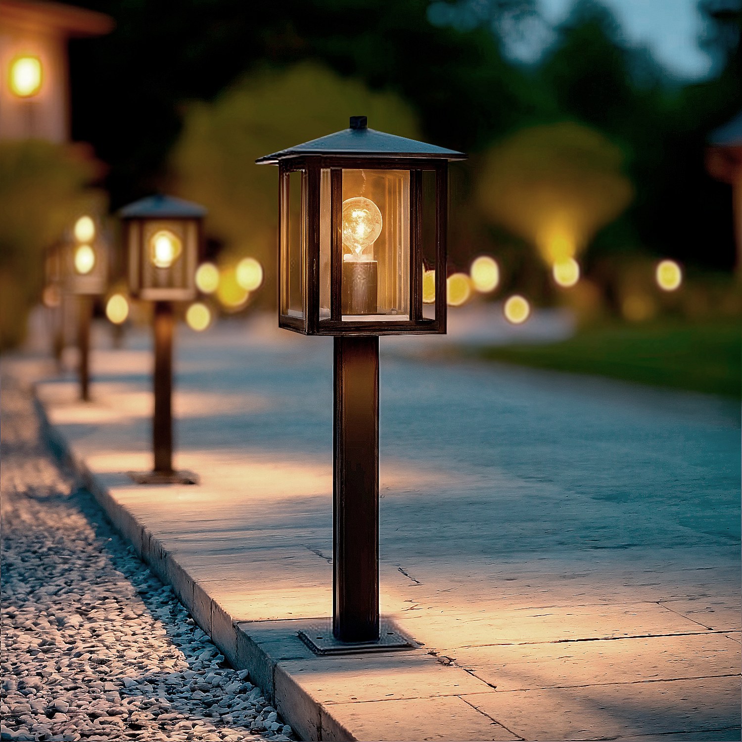 Balise Extérieur en Saillie sur Pied 50cm Acier et Verre Sentinel Noir