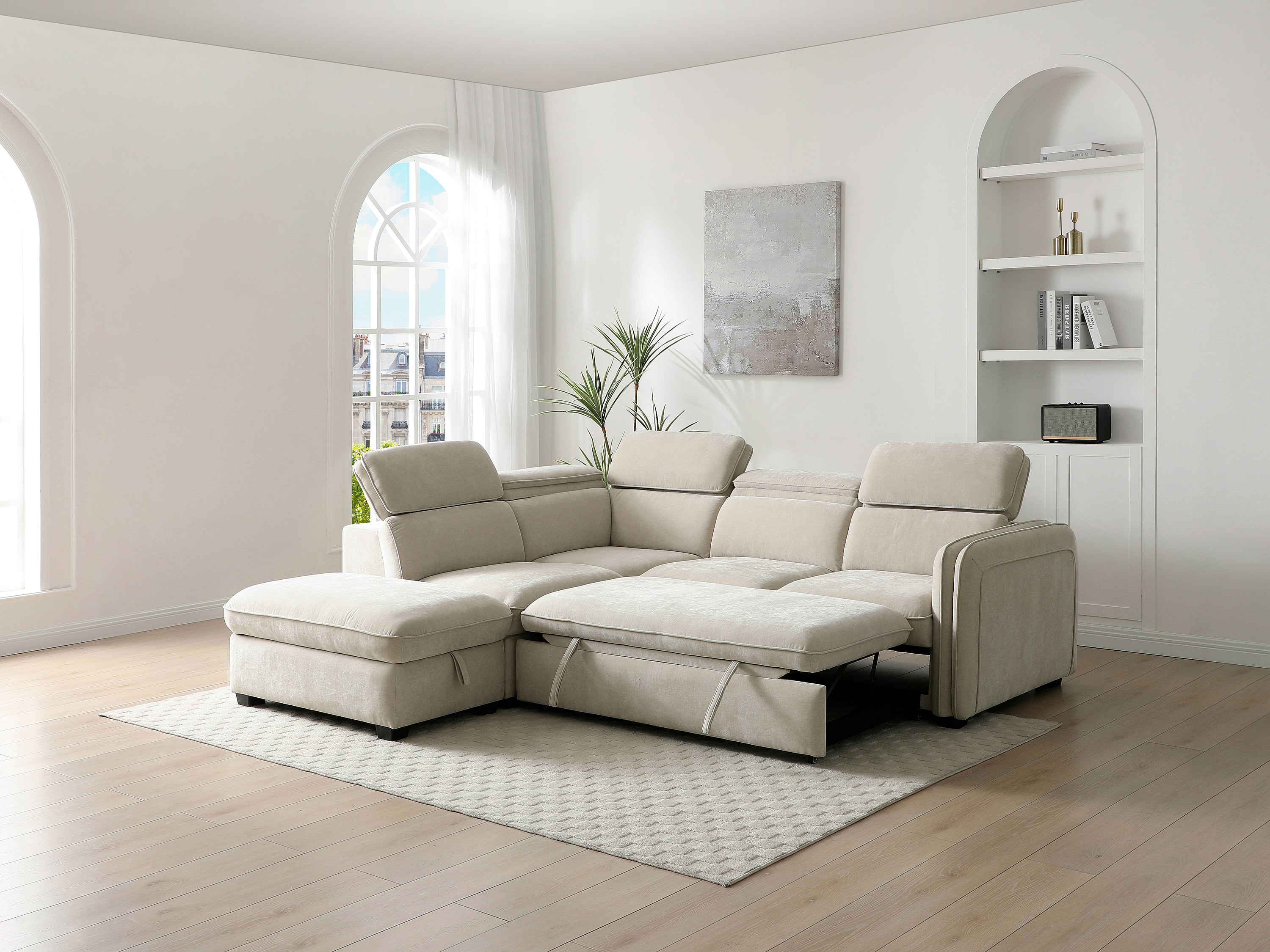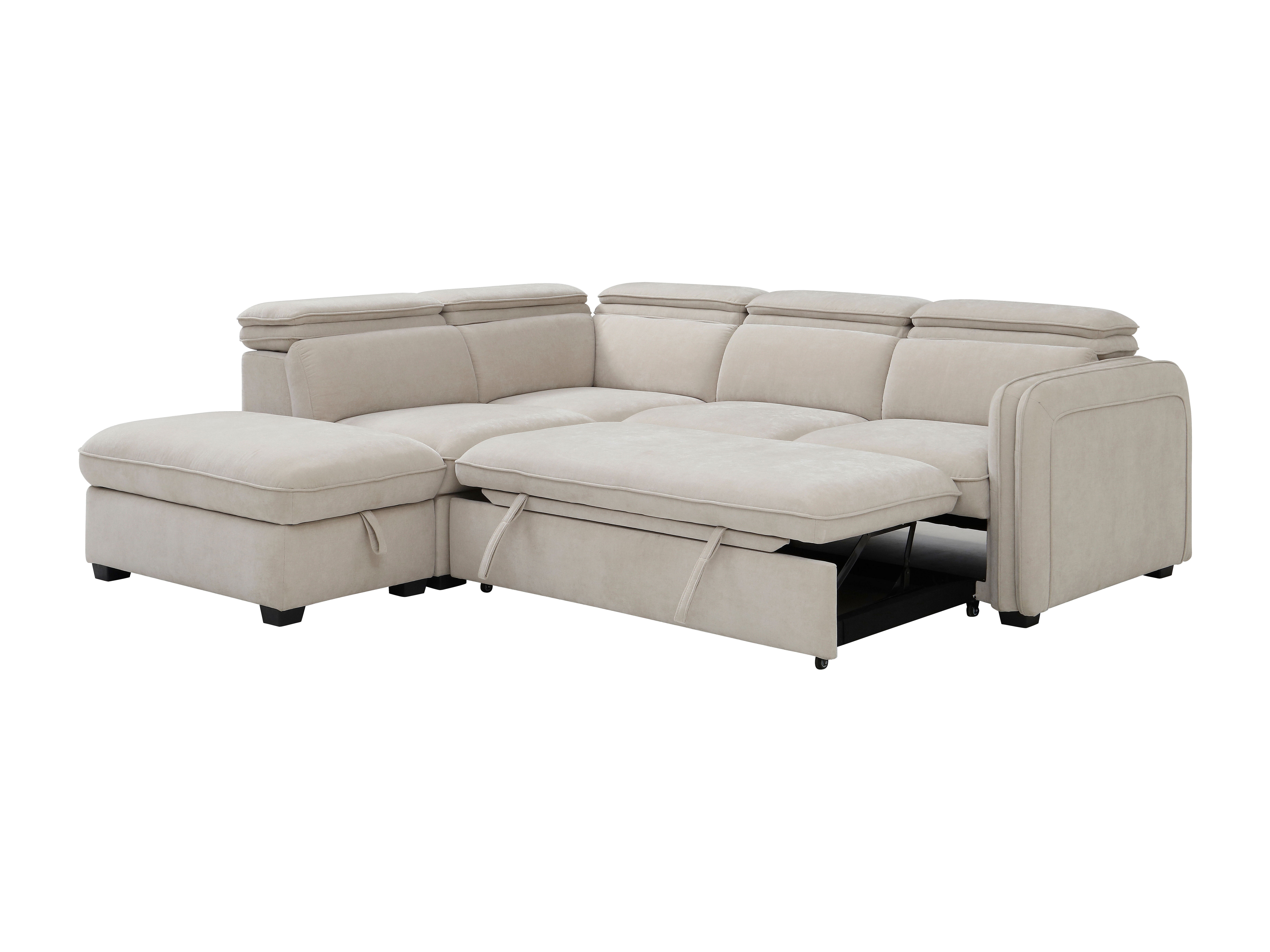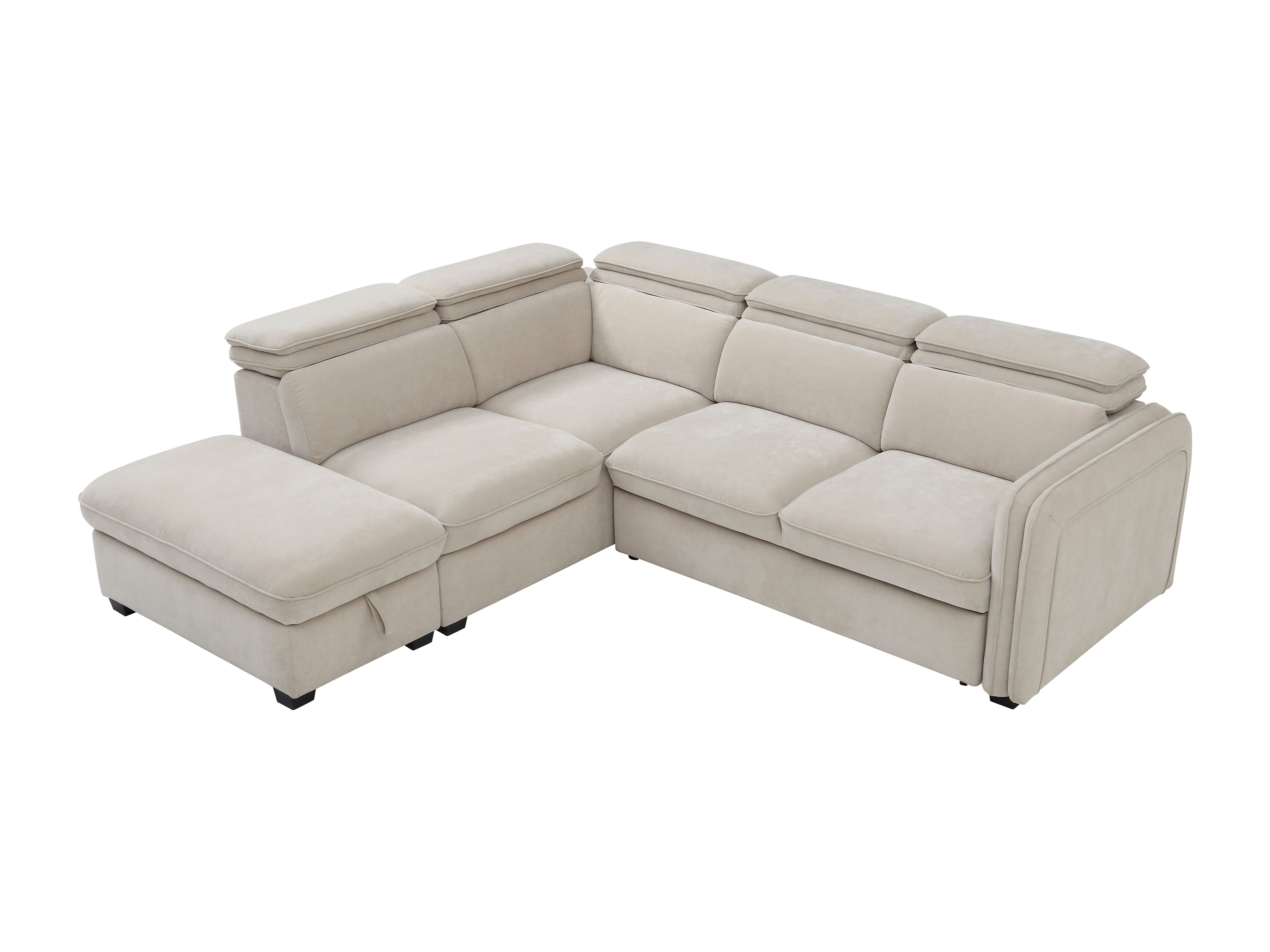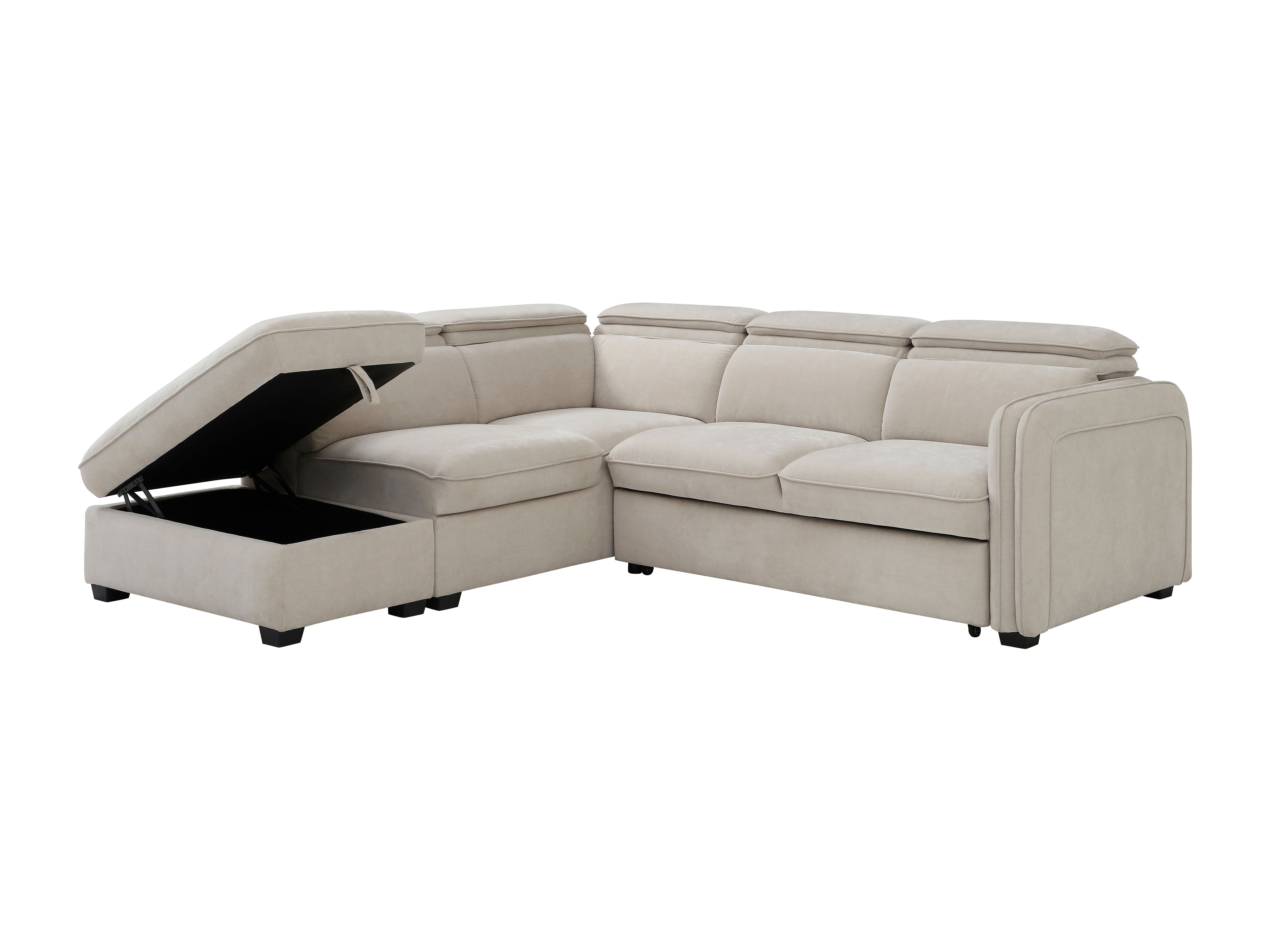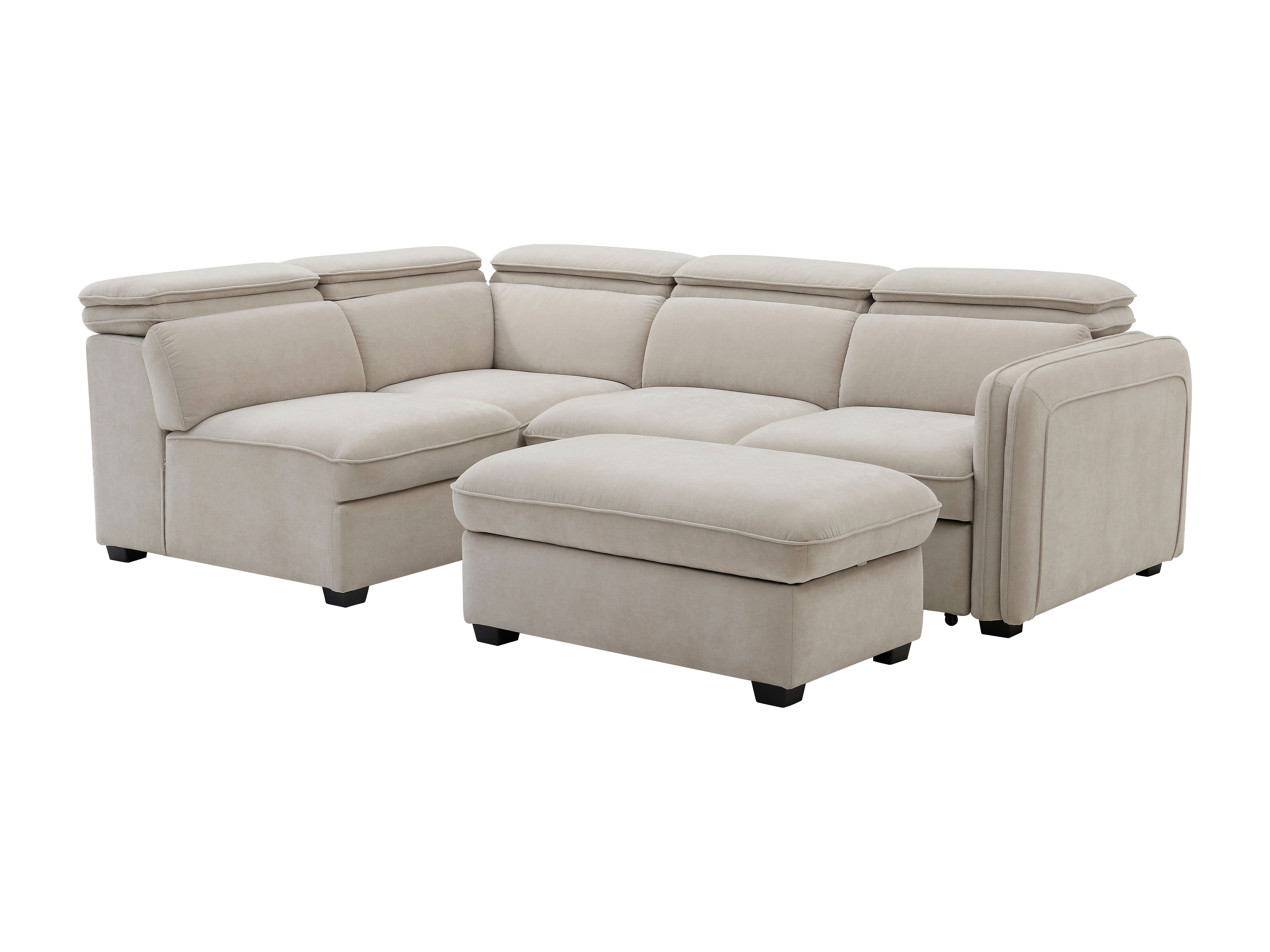 Canapé d'angle gauche convertible et pouf en tissu beige BALOTIA