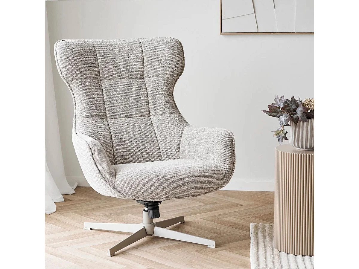 BALTASAR - Fauteuil Pivotant Tissu Bouclette Chiné Beigez Clair