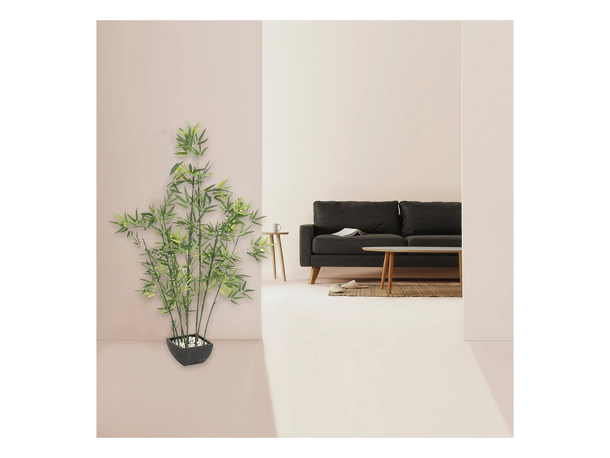 Bambou artificiel hauteur 1,2 m 552 feuilles denses réalistes pot inclus noir avec lichen vert