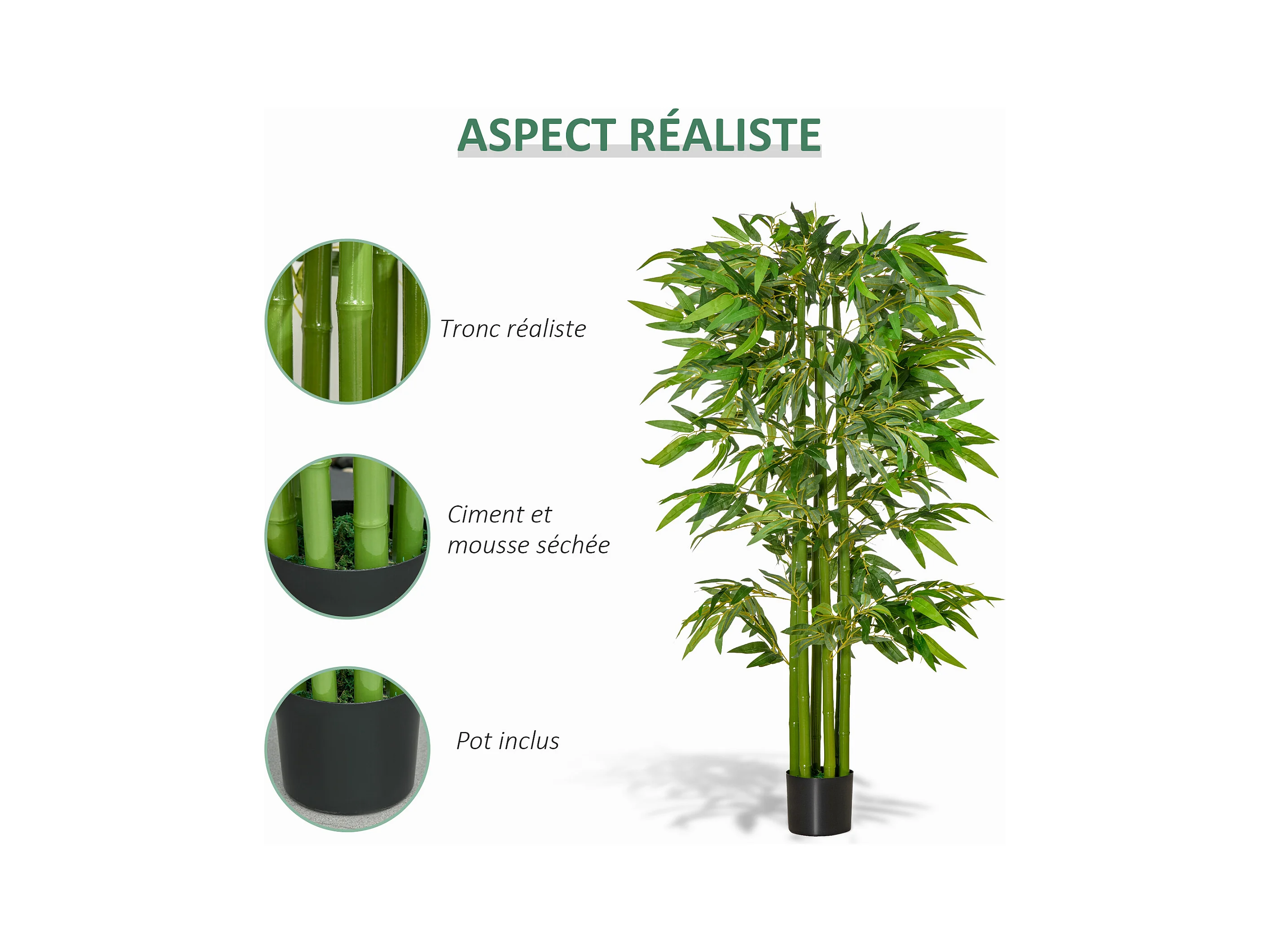 Outsunny Bambou artificiel hauteur 1,2 m 369 feuilles denses réalistes pot inclus noir avec lichen vert