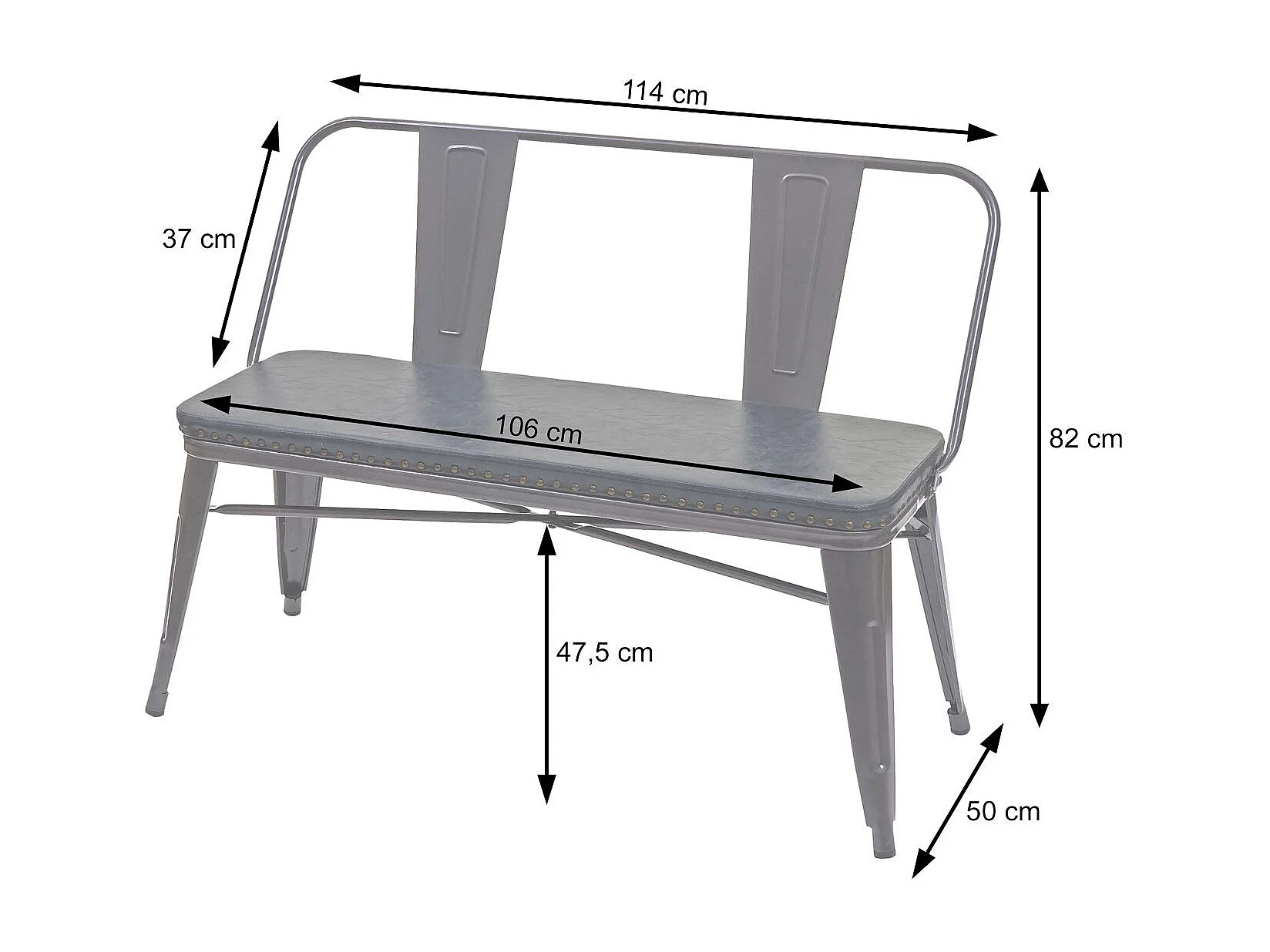 Banc 2 places de PVC grise 114 x 50 x 82 cm 04_0000062