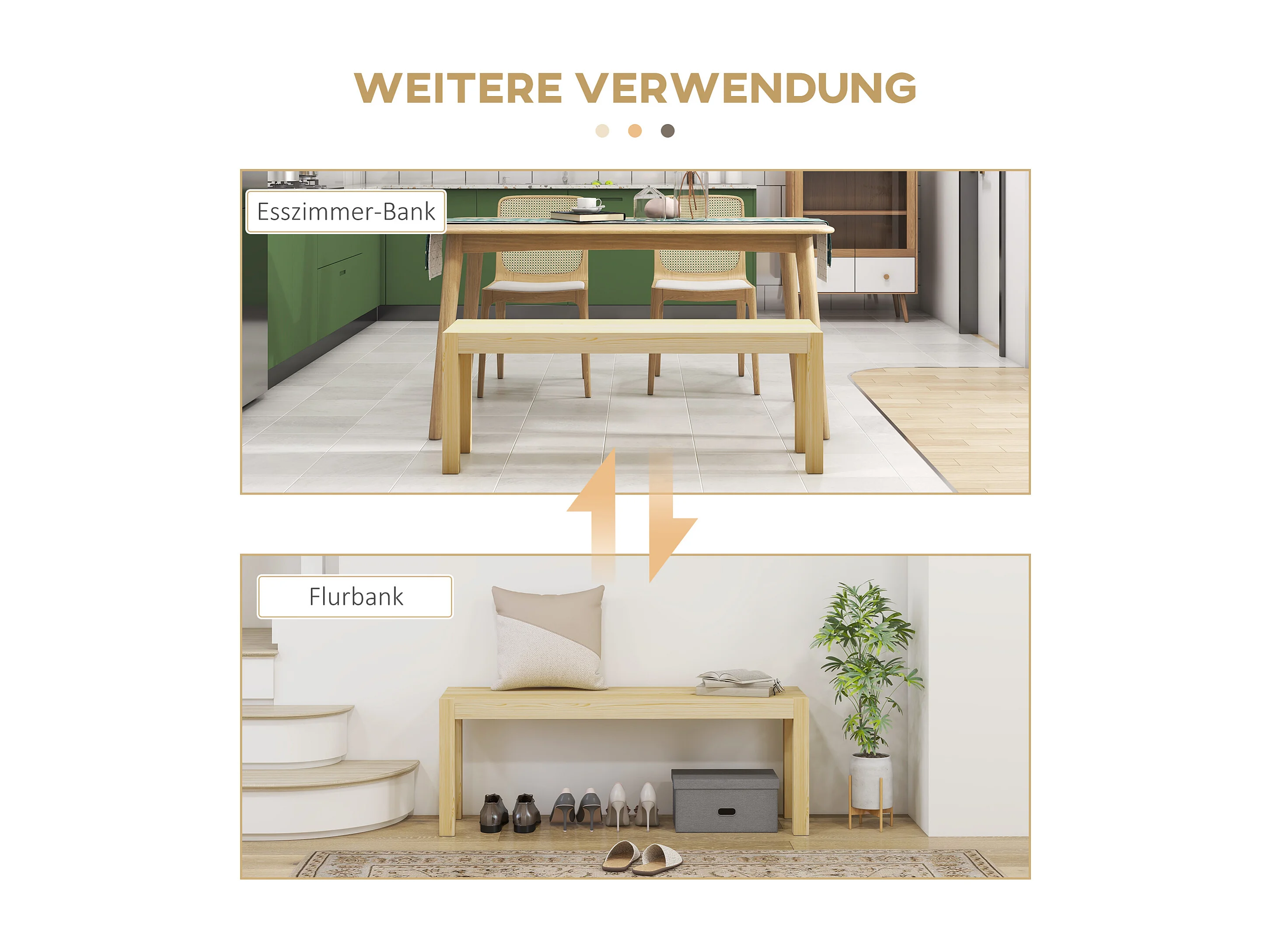 Banc 2 places style campagne, pin naturel, robustesse élevée, naturel (120x33x45cm)