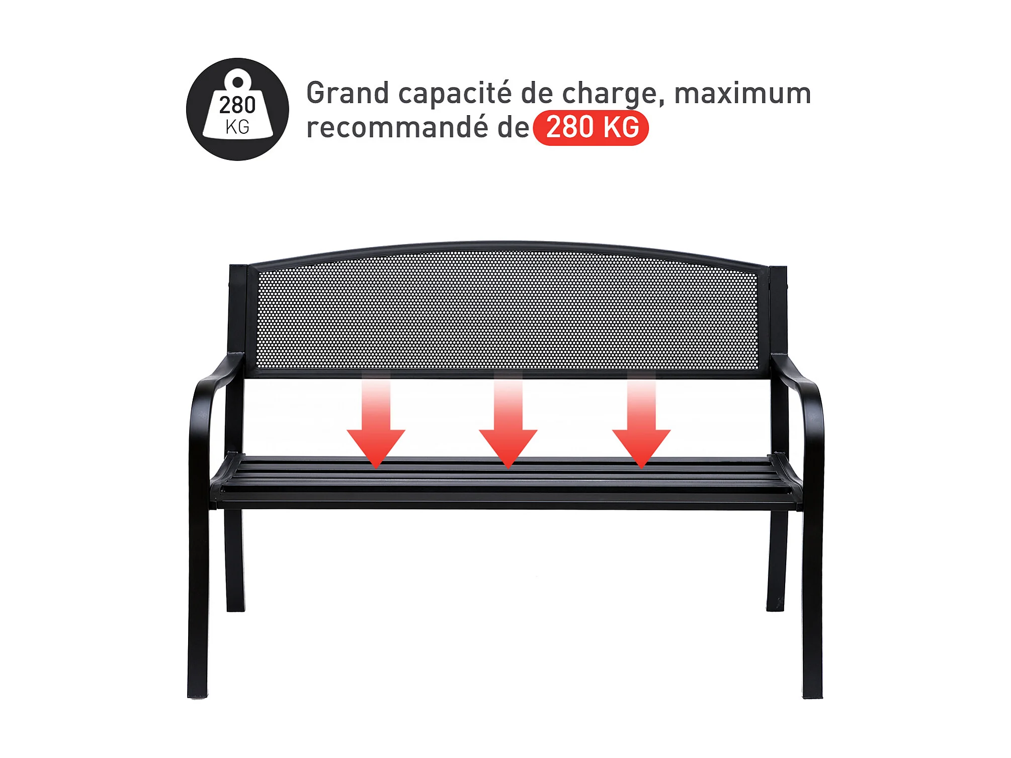 Banc 3 places de jardin terrasse style contemporain 127L x 60l x 87H cm métal époxy anticorrosion noir