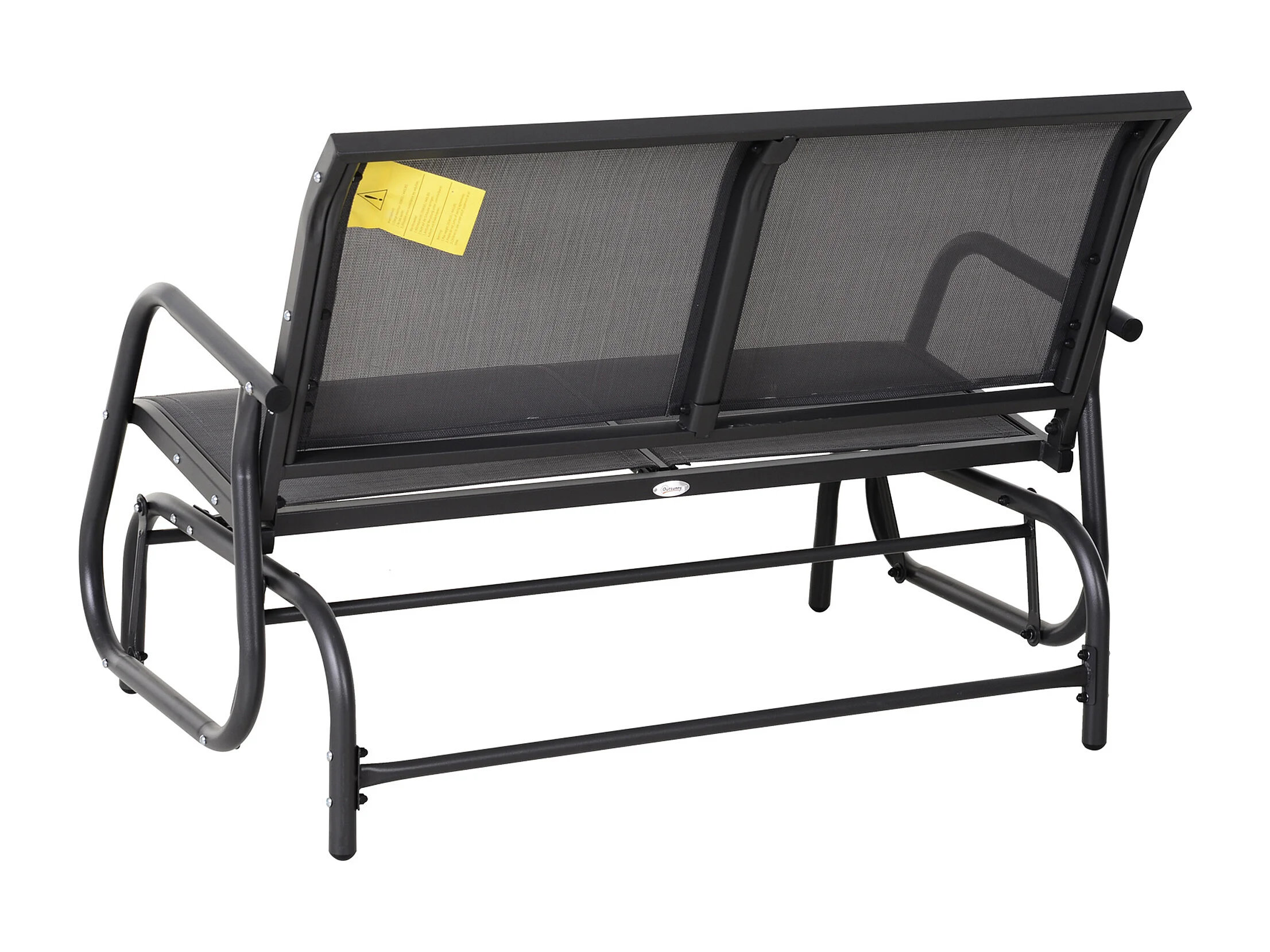 Banc à bascule de jardin 2 places design contemporain grand confort accoudoirs assise, dossier ergonomique acier textilène gris
