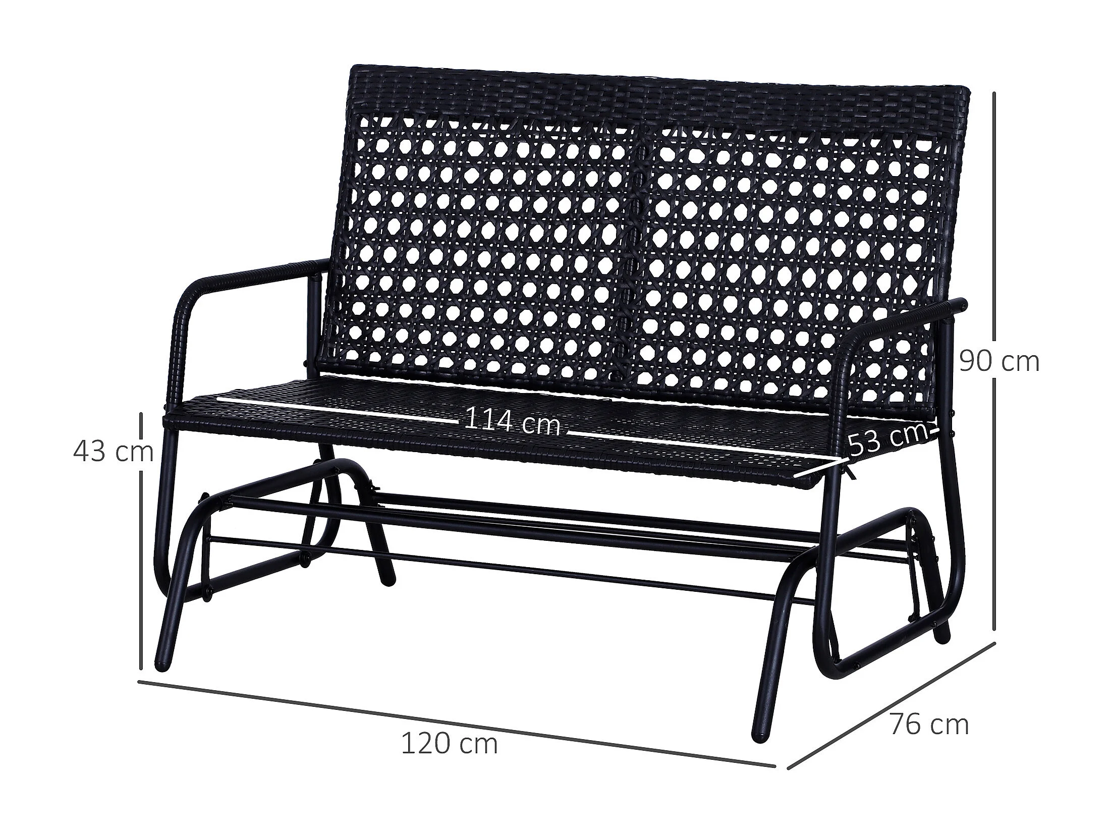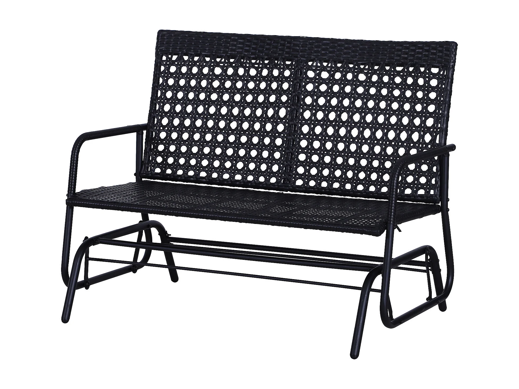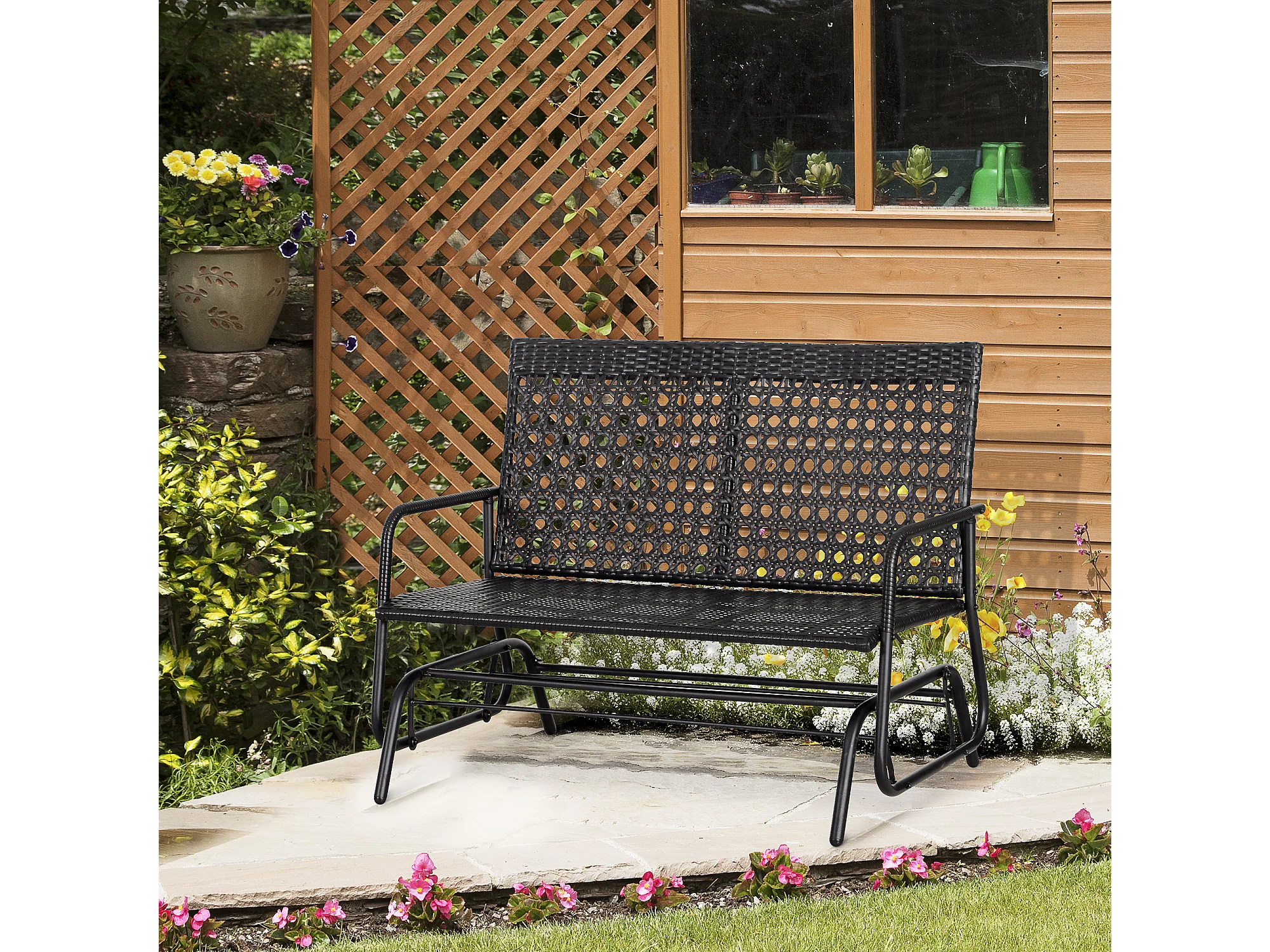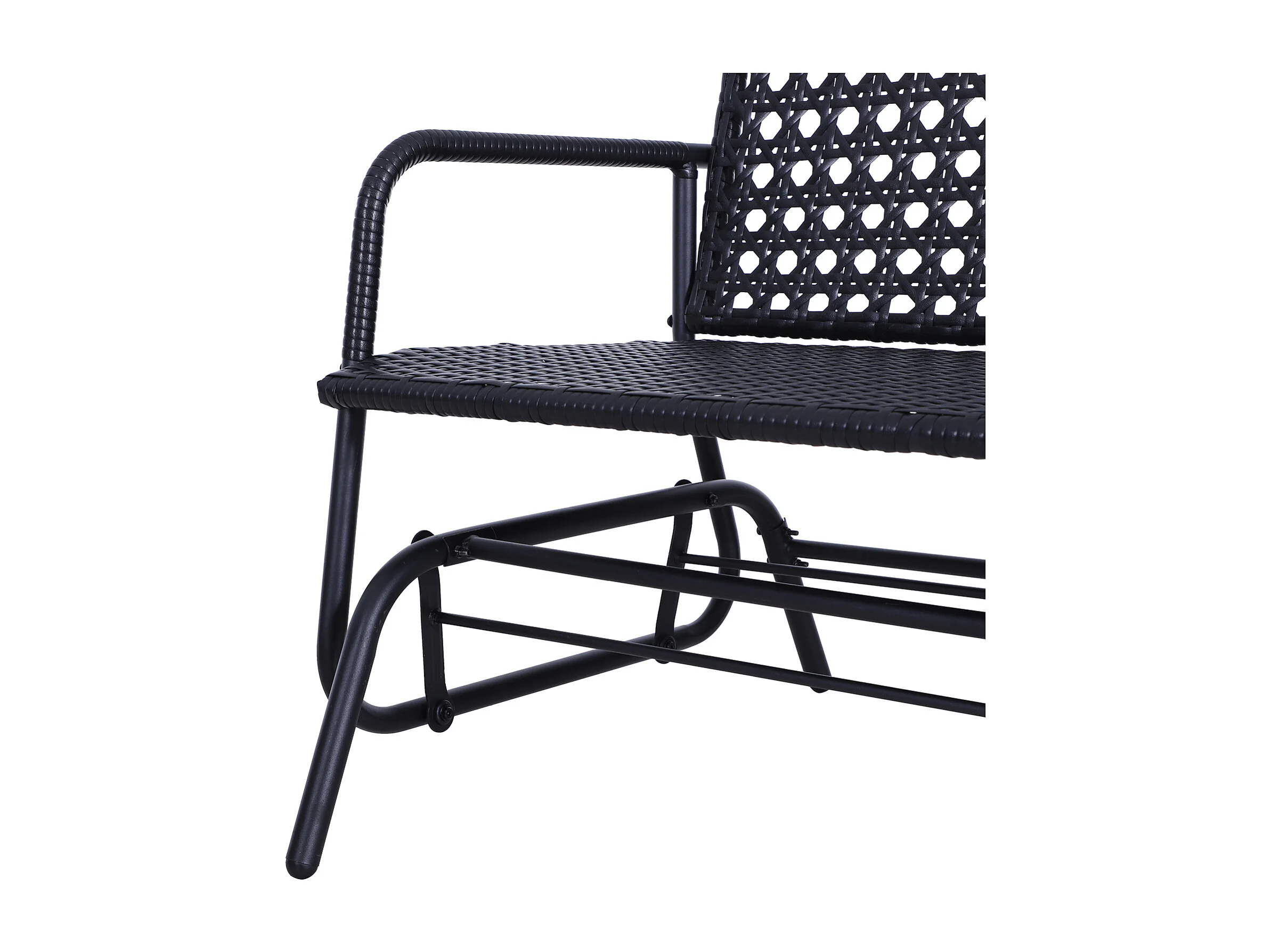 Banc à bascule de jardin 2 places style cosy chic métal époxy résine tressée imitation rotin noir