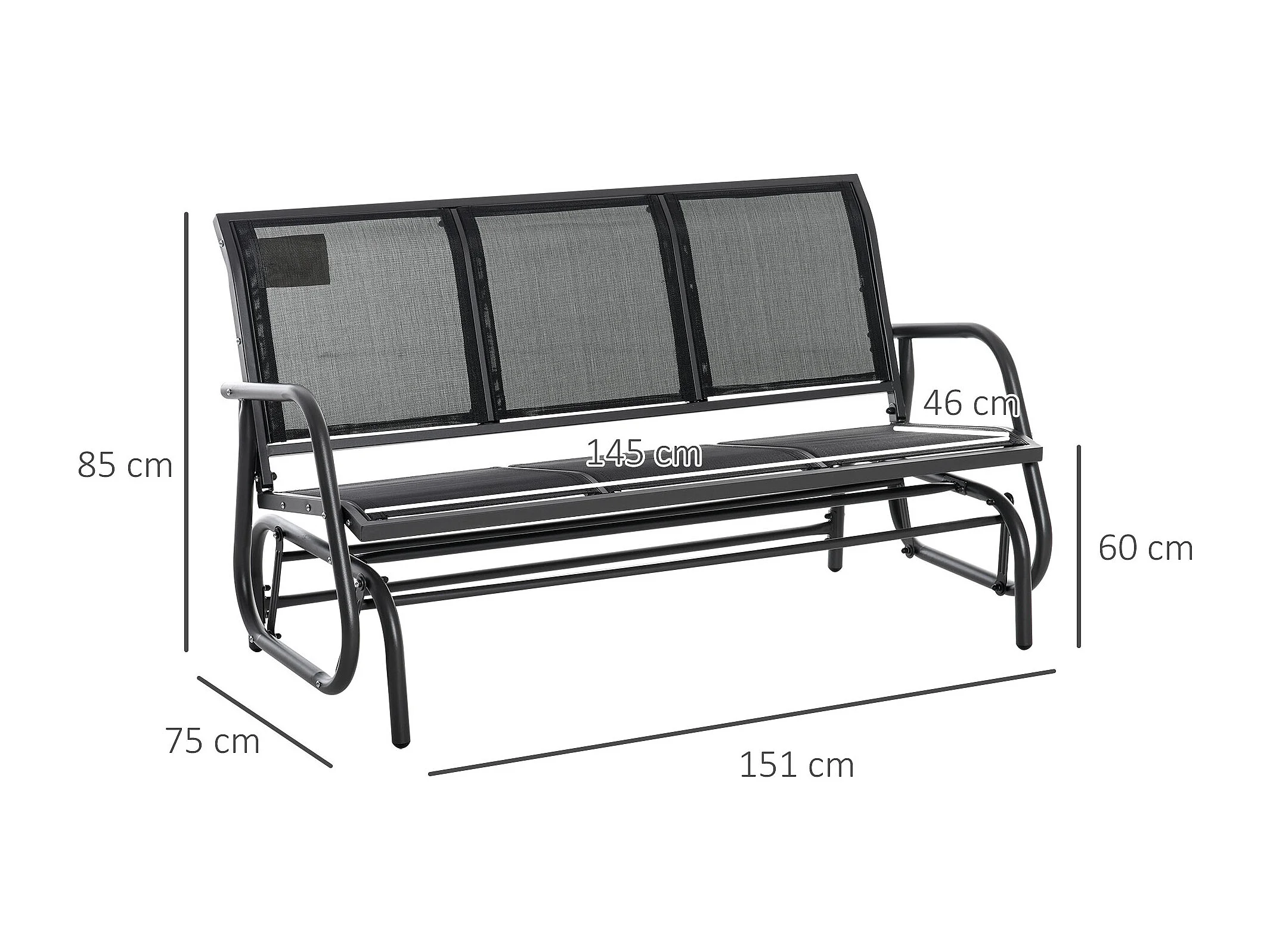 Banc à bascule de jardin 3 places design contemporain grand confort accoudoirs assise et dossier ergonomique acier textilène noir