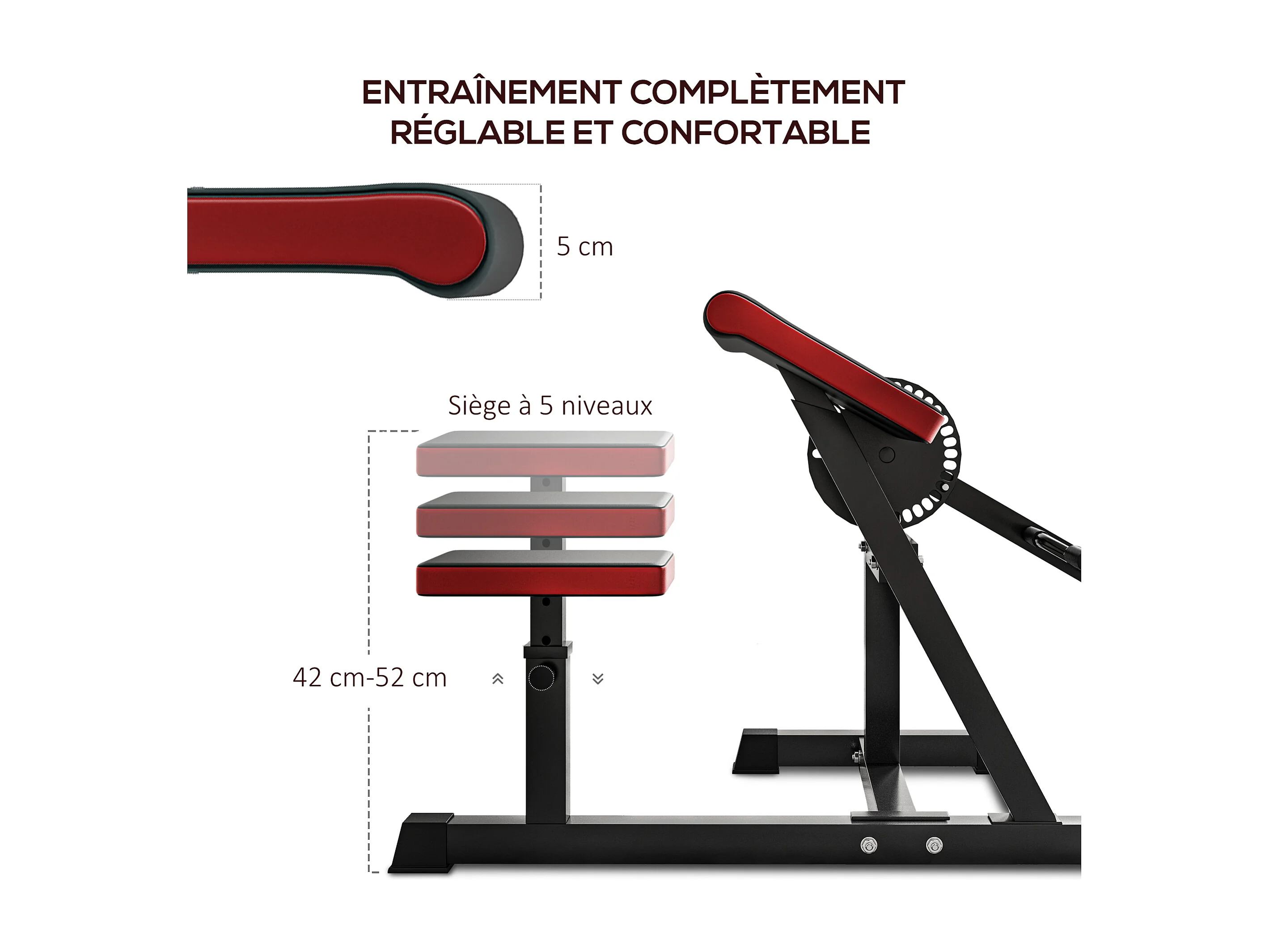 Banc à biceps preacher curl assise réglable 5 niveaux charge max. 120 Kg acier noir rouge