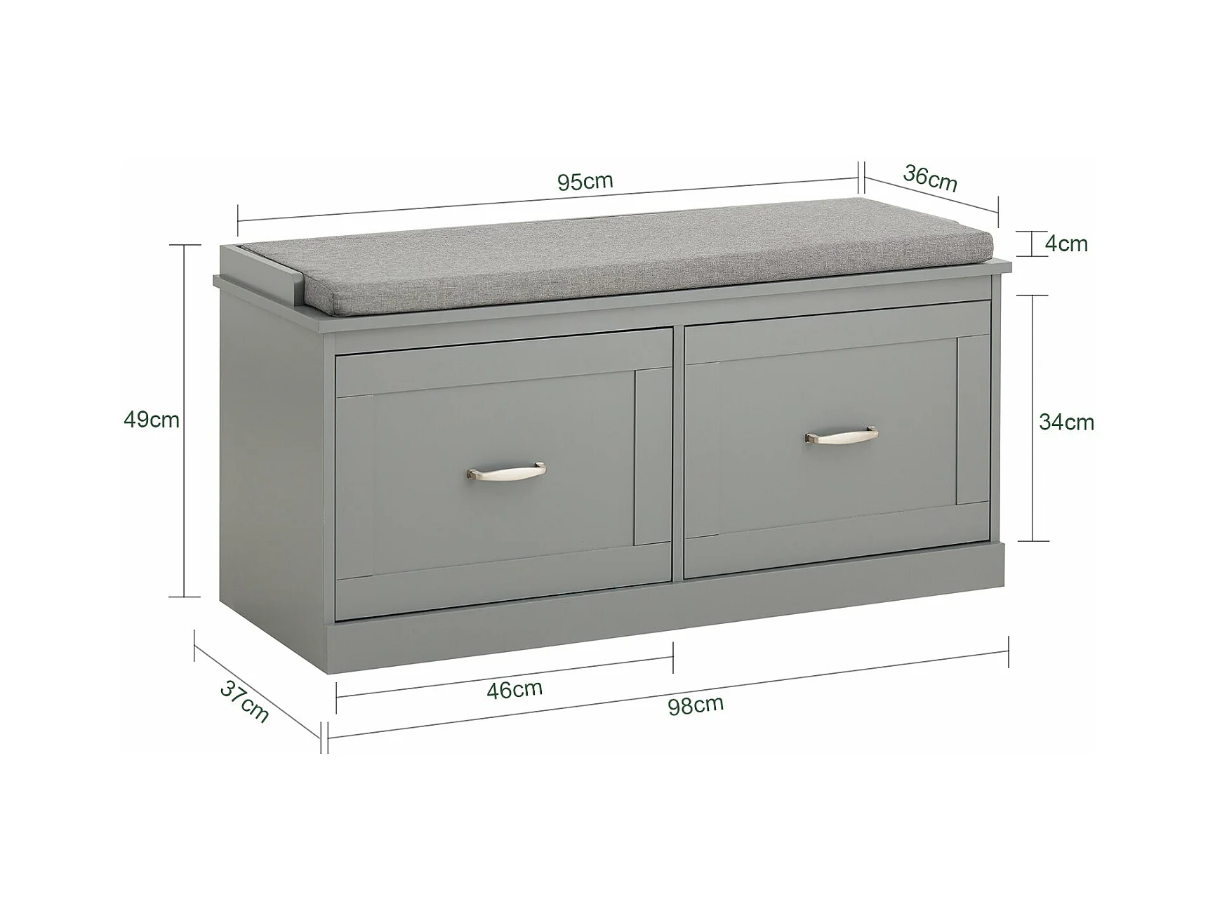 Banc de Rangement à chaussures 2 étages avec Grise coussin Commode à Chaussures blanc, FSR25-HG