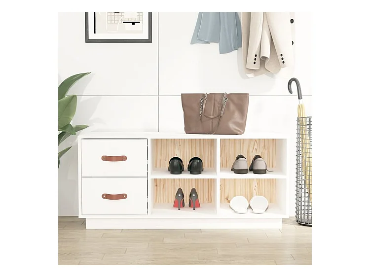 Banc à chaussures Blanc 100x34x45 Bois de pin massif