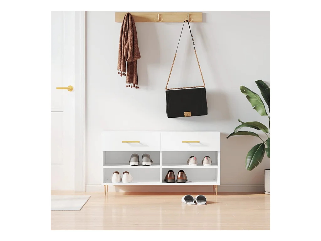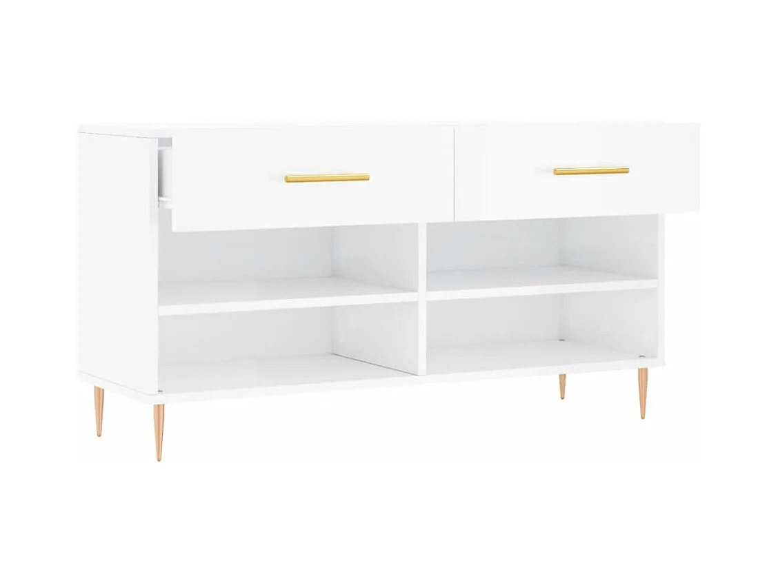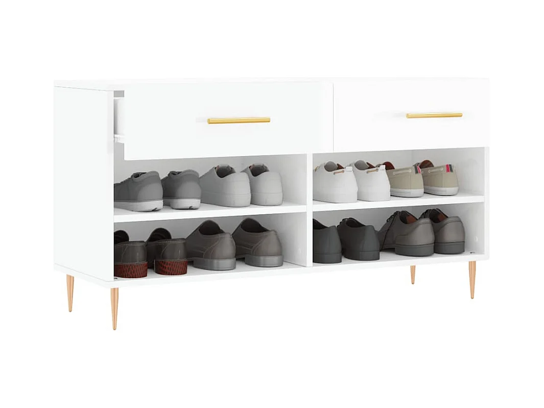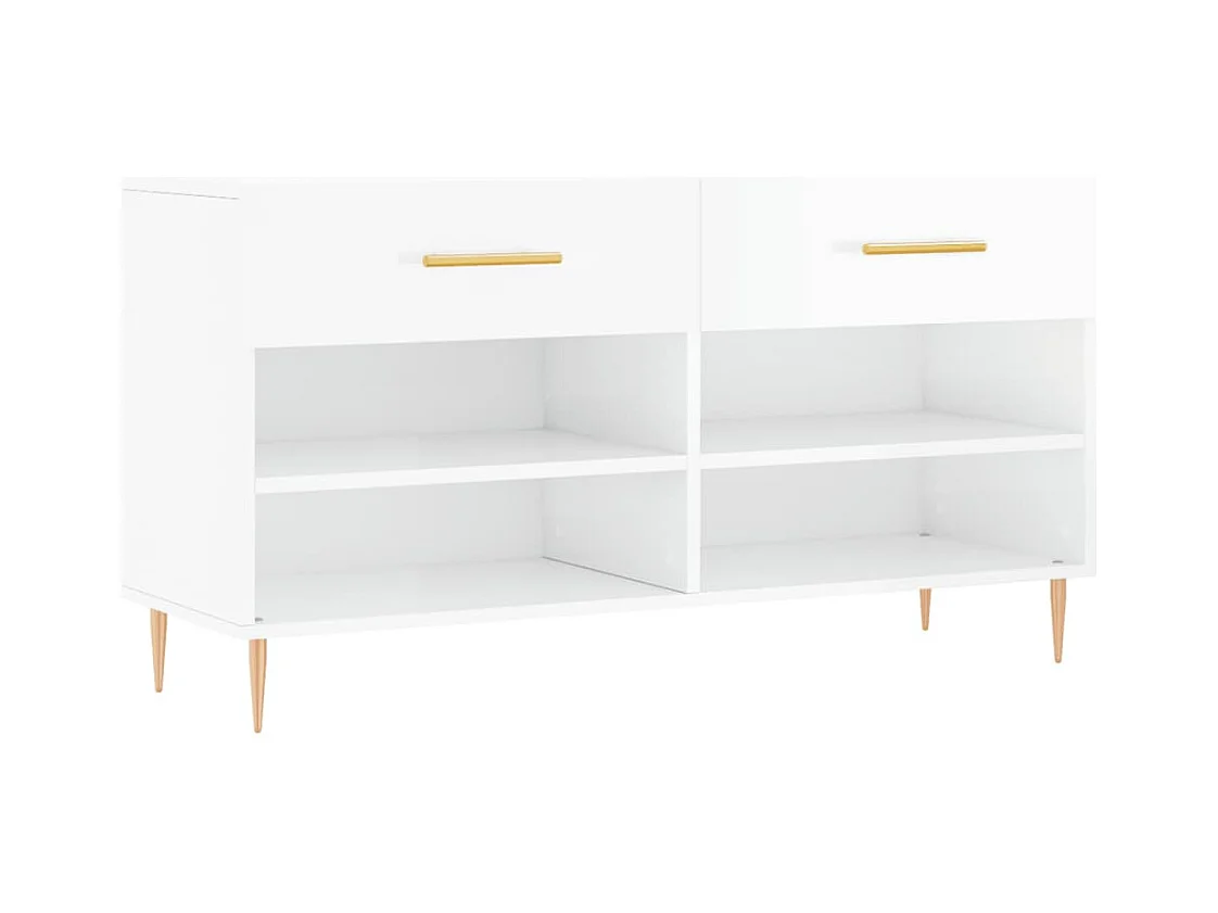 Banc à chaussures blanc brillant 102x35x55 cm bois d'ingénierie