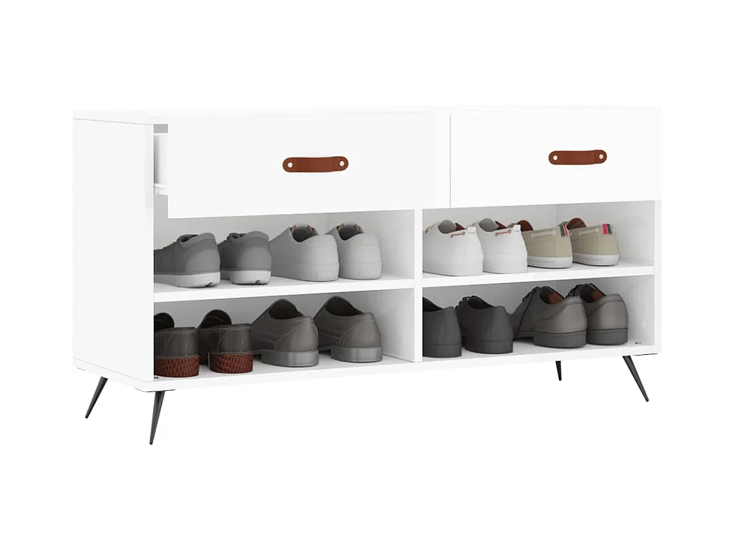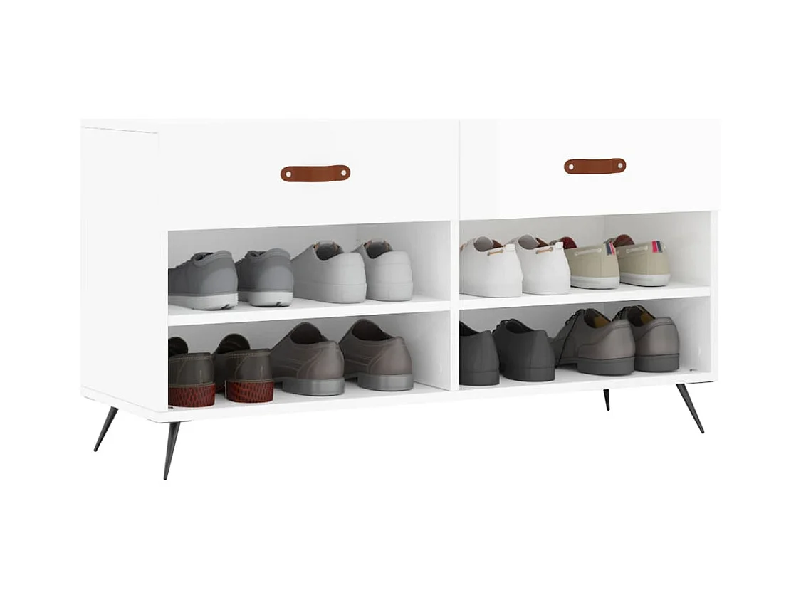 Banc à chaussures blanc brillant 102x35x55 cm bois d'ingénierie