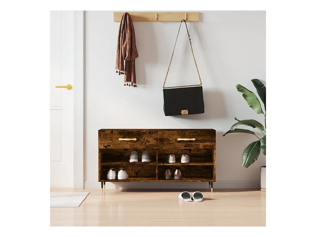 Banc à chaussures chêne fumé 102x35x55 bois d'ingénierie