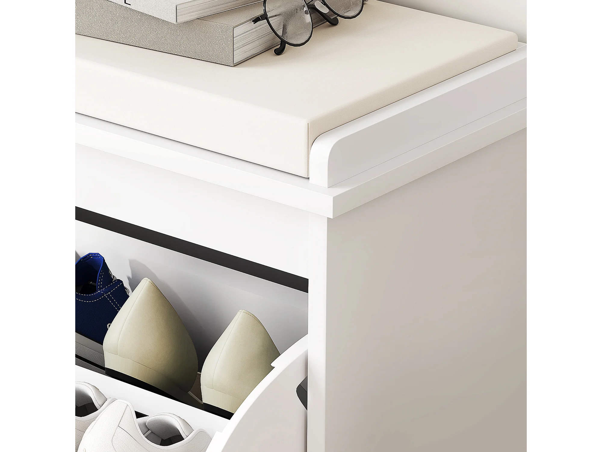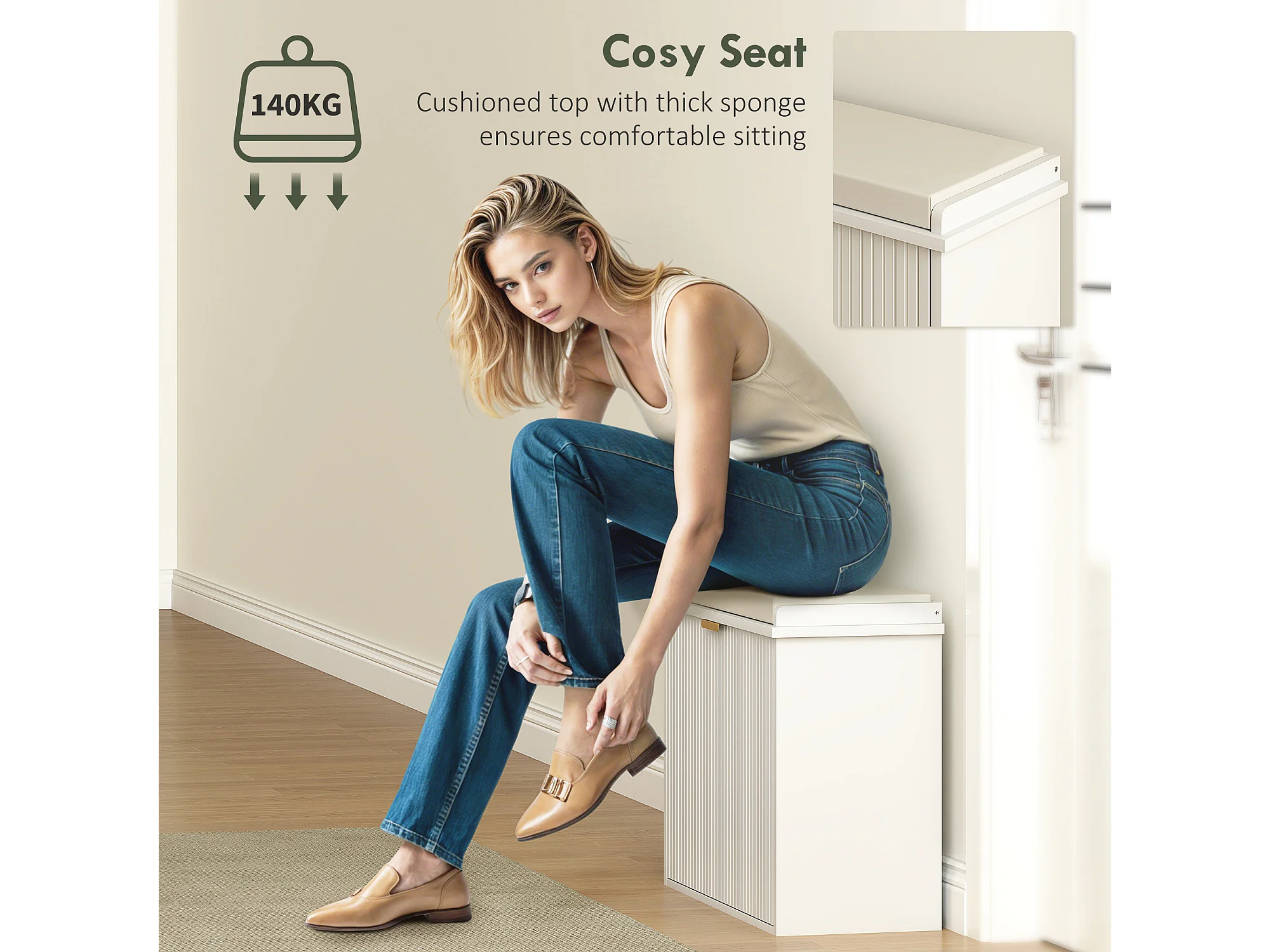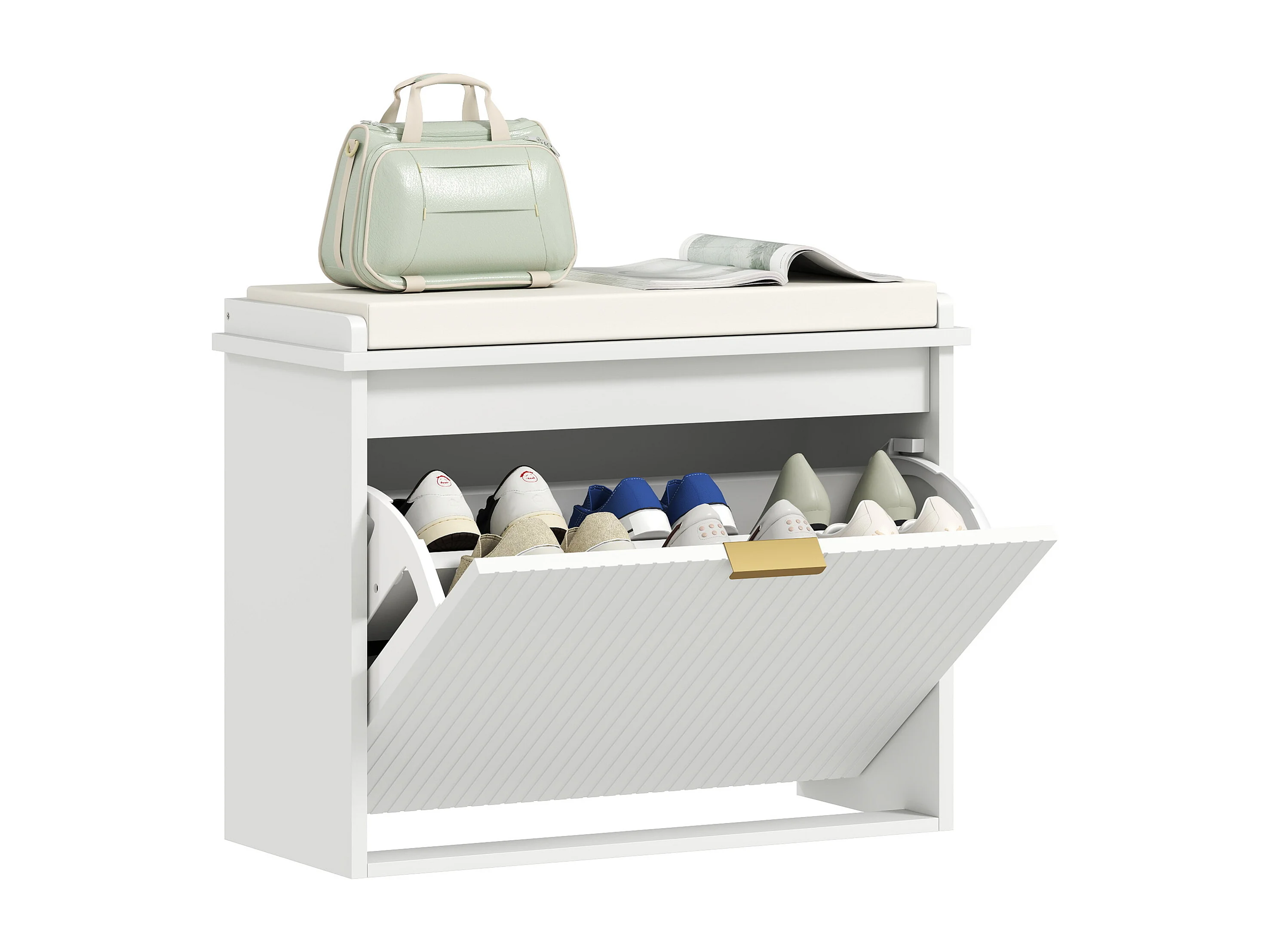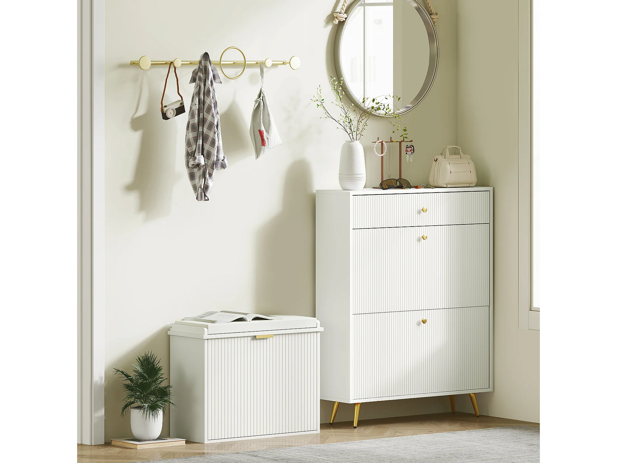 Banc à chaussures compact meuble à chaussures avec banquette design effet cannelé poignée doré
