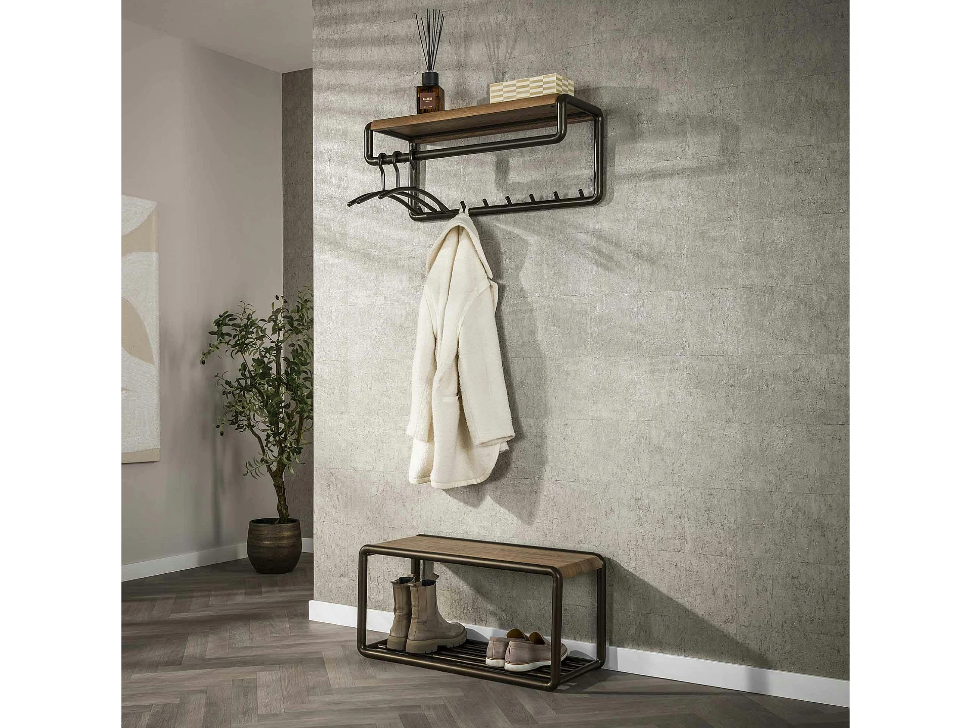Banc à chaussures effet bois et métal cuivré HELSINKI