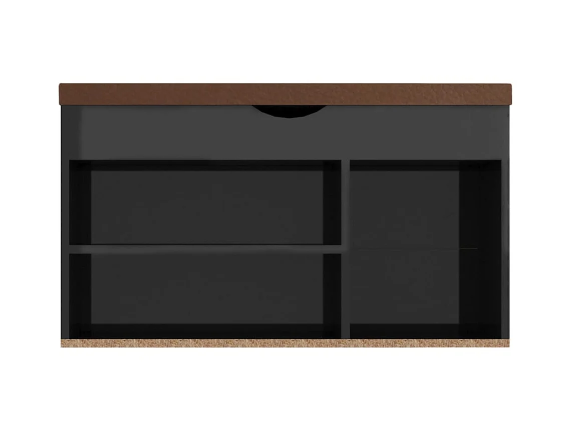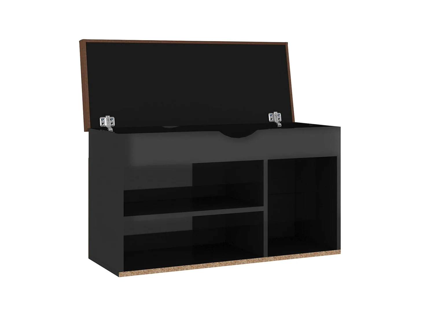 Banc à chaussures et coussin Noir brillant Bois d'ingénierie