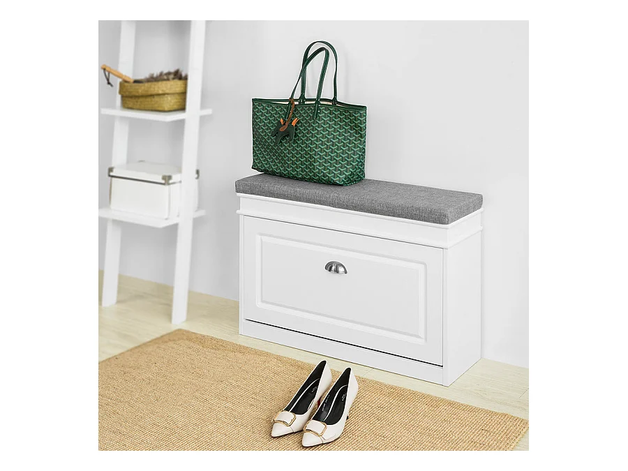 Banc À Chaussures Meuble À Chaussures Avec Assise Coussin Rembourré, 75x24x51 Cm, Fsr82-l-w