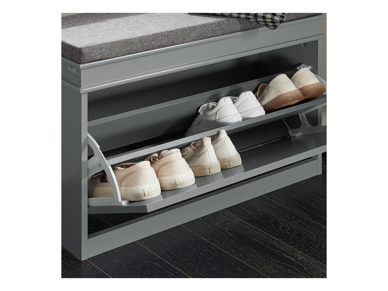 Banc de Rangement à chaussures 2 étages avec Grise coussin Commode à Chaussures blanc, FSR25-HG