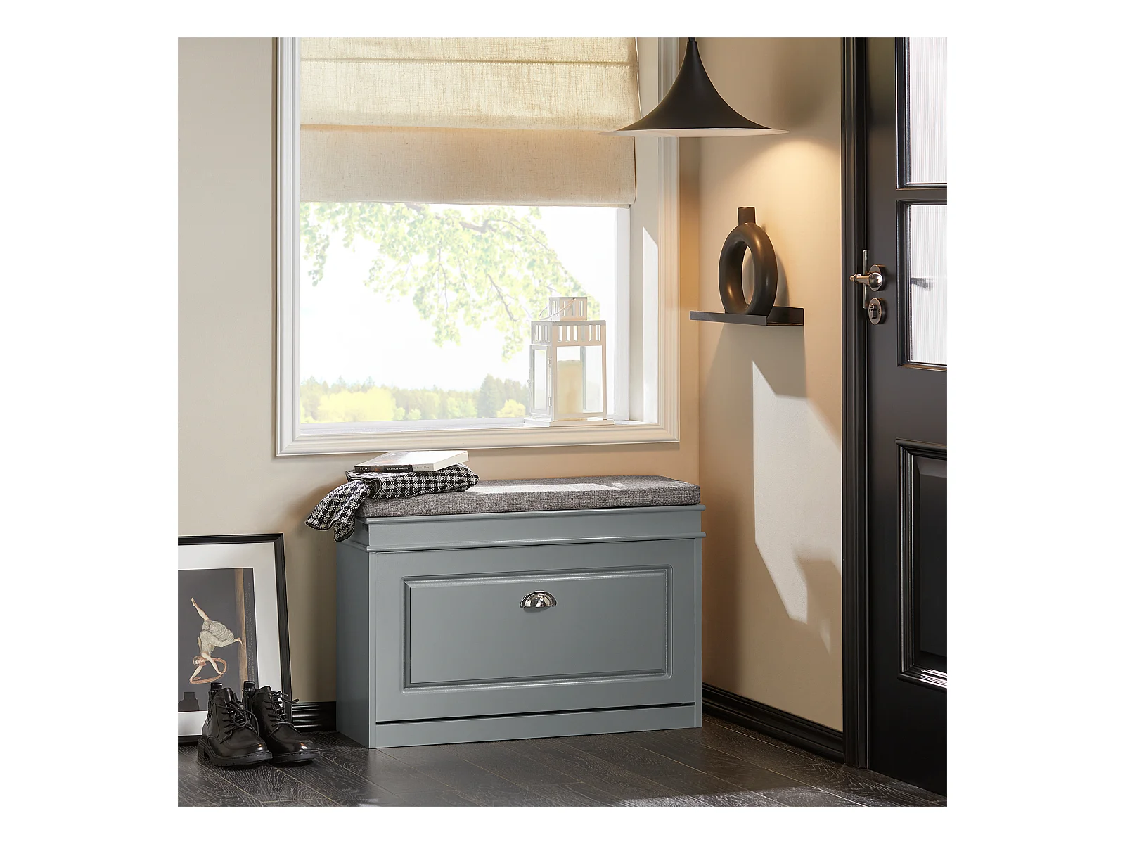 Banc à Chaussures Meuble à Chaussures avec Assise Coussin Rembourré et Abattant Gris, FSR82-L-HG