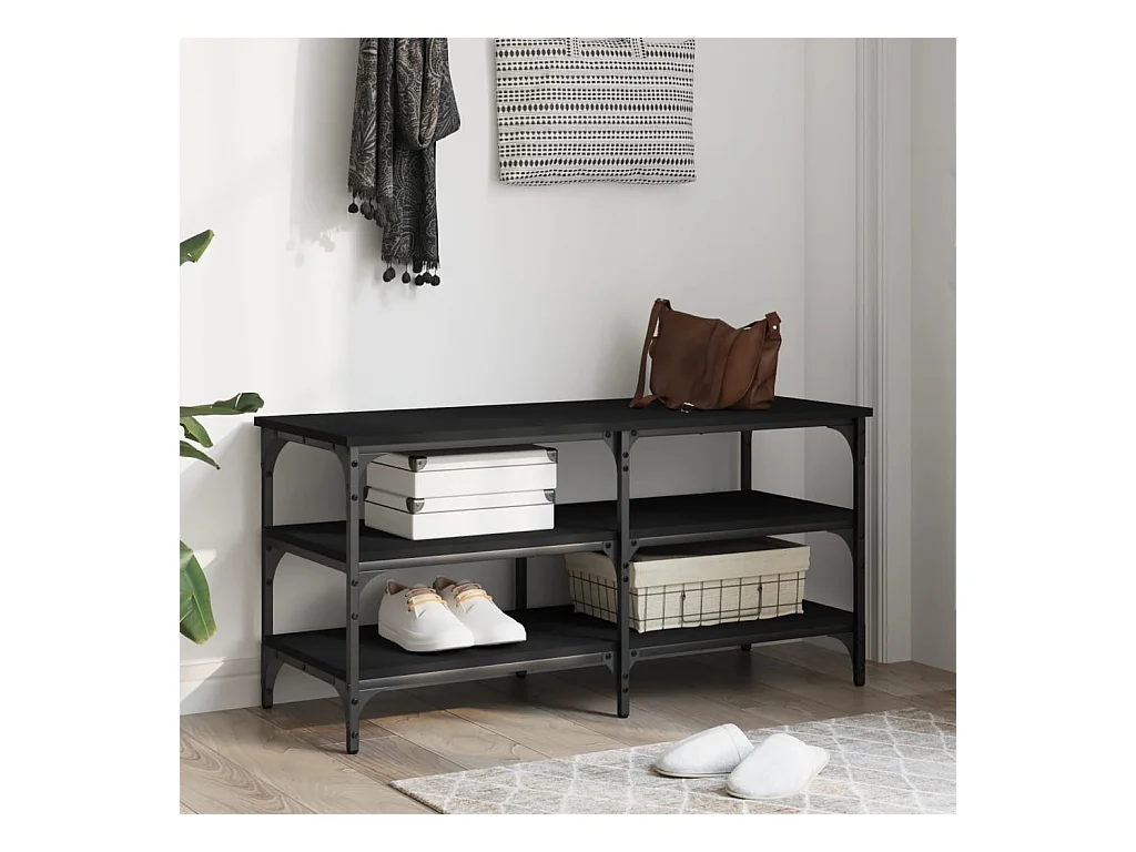 Banc à chaussures noir 102x32x50 bois d'ingénierie