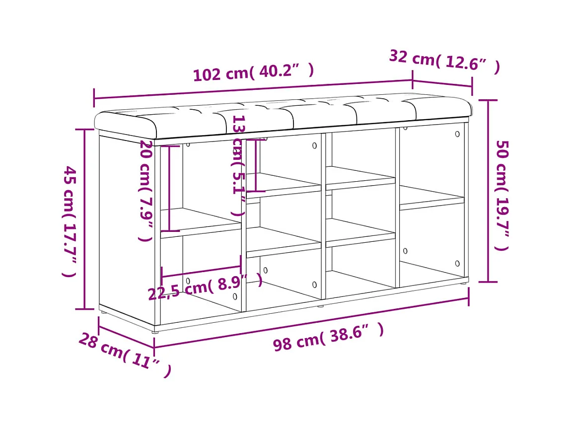 Banc à chaussures noir 102x32x45 bois d'ingénierie