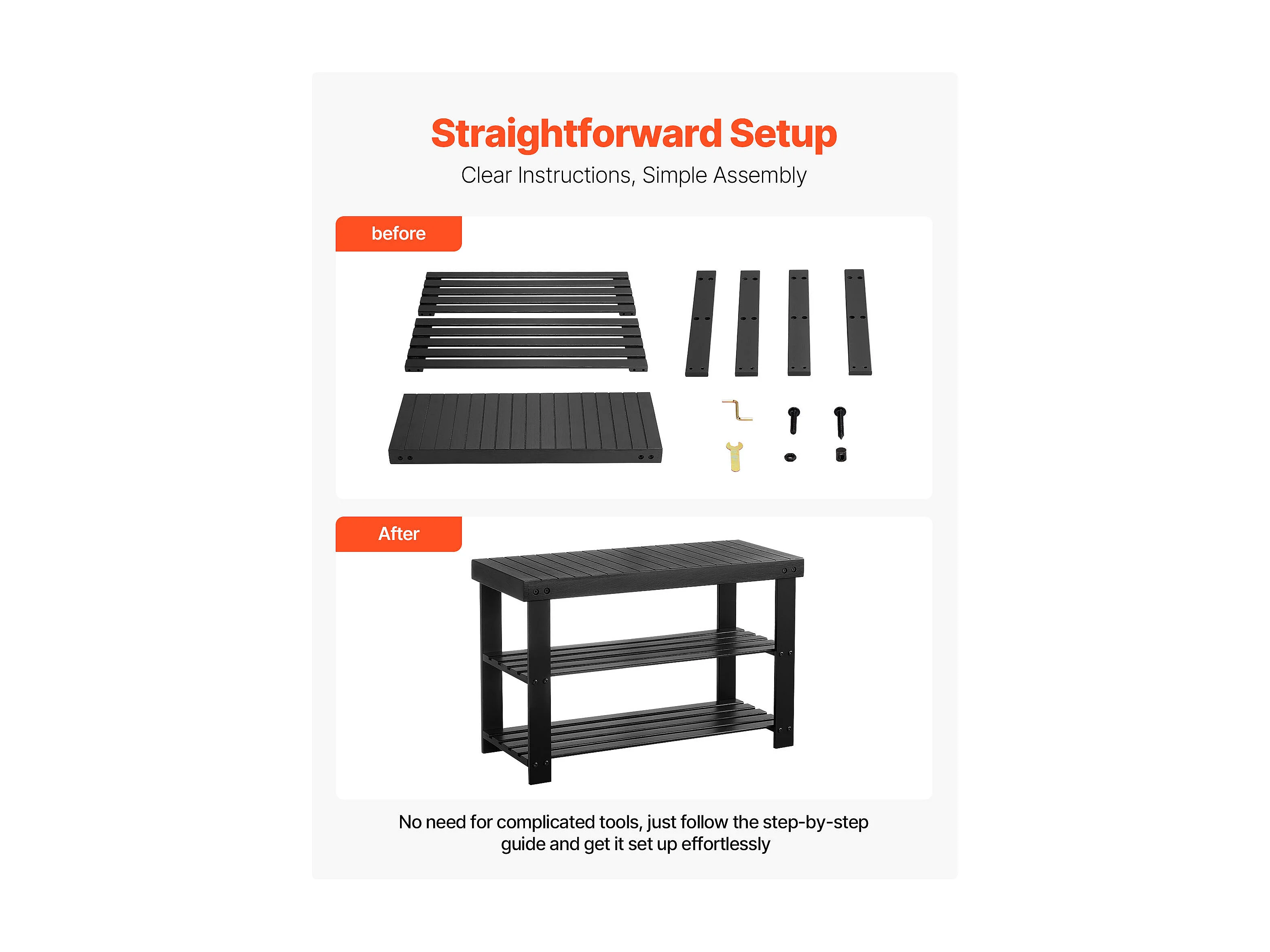 Banc à Chaussures SucceBuy de 70.3 x 28.8 x 45.1 cm, Banc d'Entrée Supporte jusqu'à 129,7 kg, Rangement à Chaussures Polyvalent à 3 Niveaux, Noir