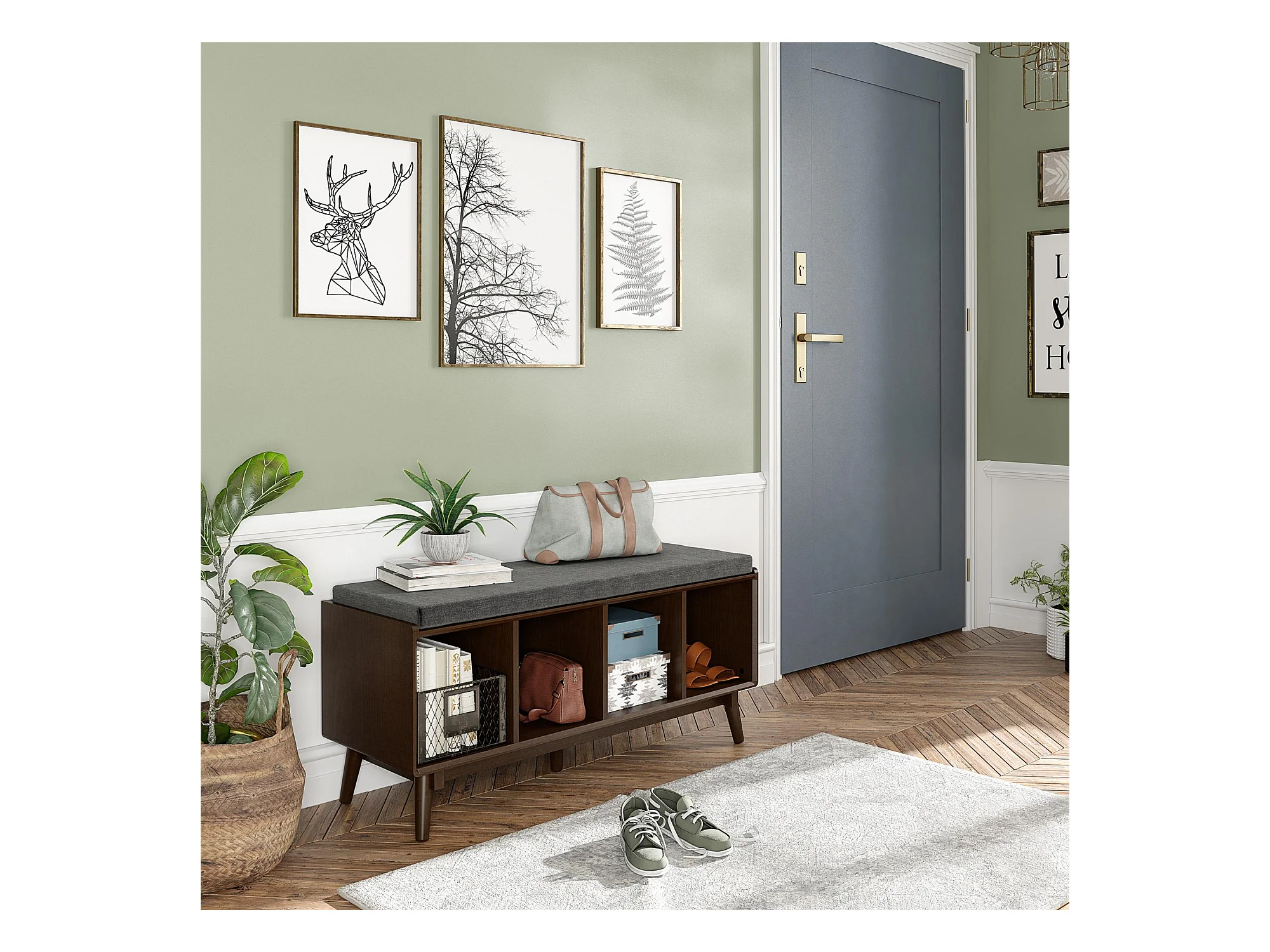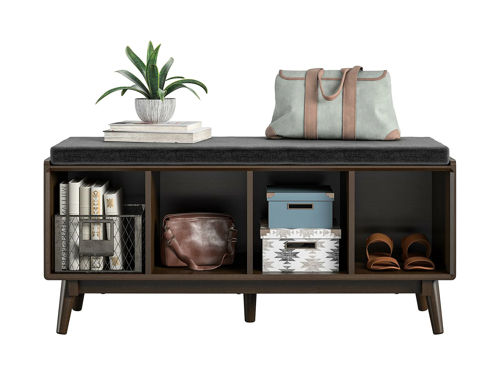Brittany | Banc avec 4 compartiments en MDF marron