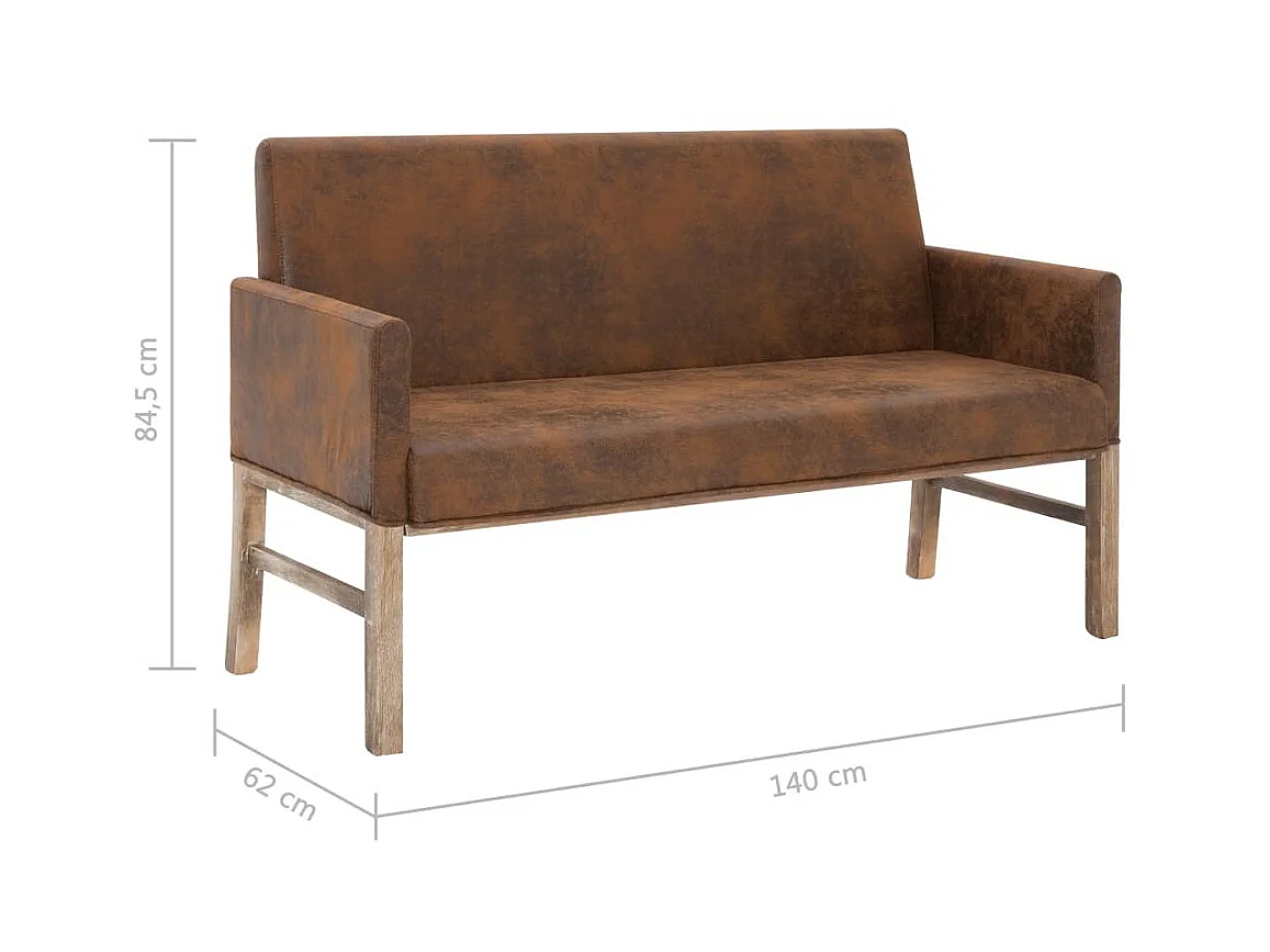 Banc avec accoudoirs vintage simili cuir marron vieilli et pieds pin massif Barielle 140cm