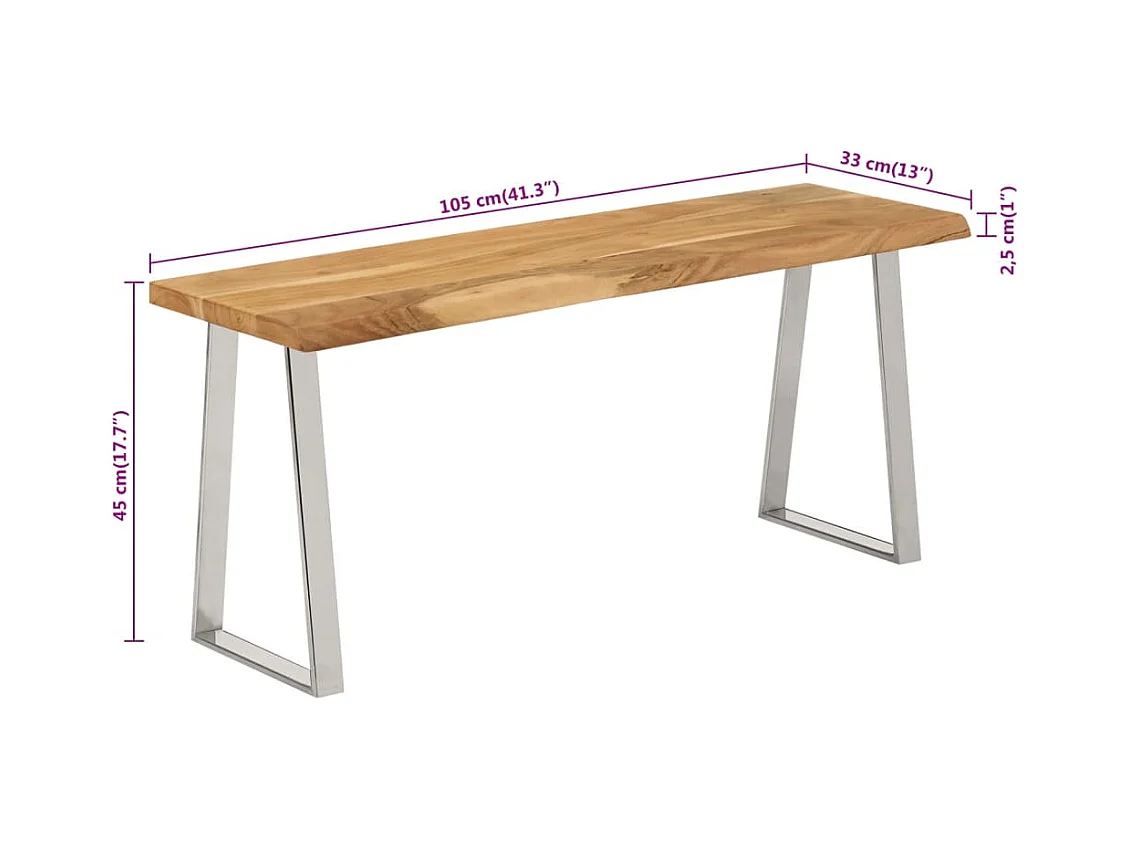 Banc avec bord vivant 105cm bois d'acacia massif