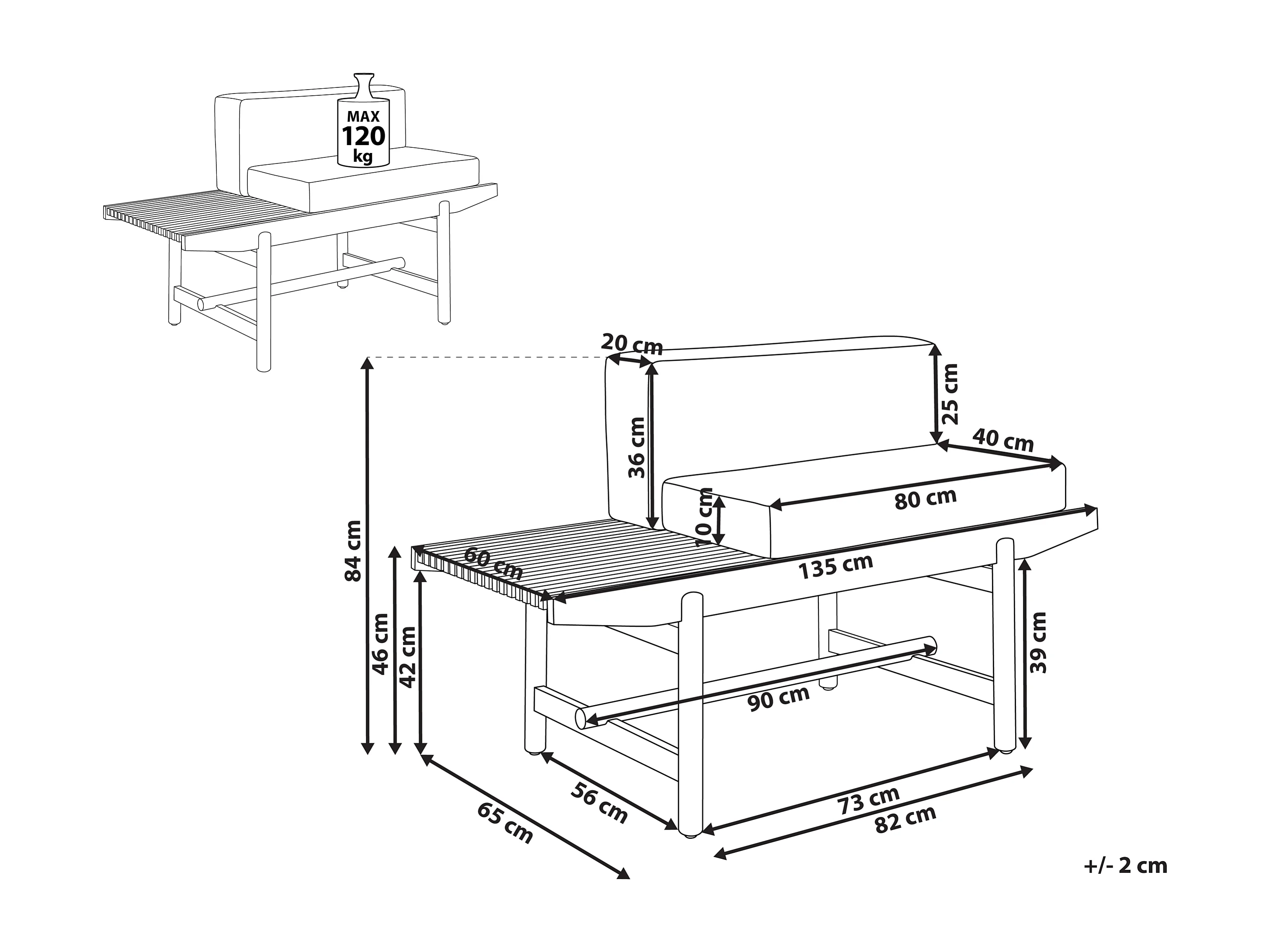 Banc avec coussin d'assise GIAVENO 135 cm Acacia Blanc cassé