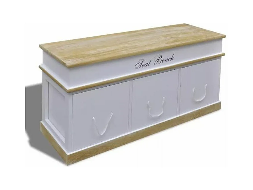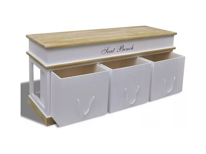 Banc avec rangement 3 tiroirs bois massif clair et blanc Tona