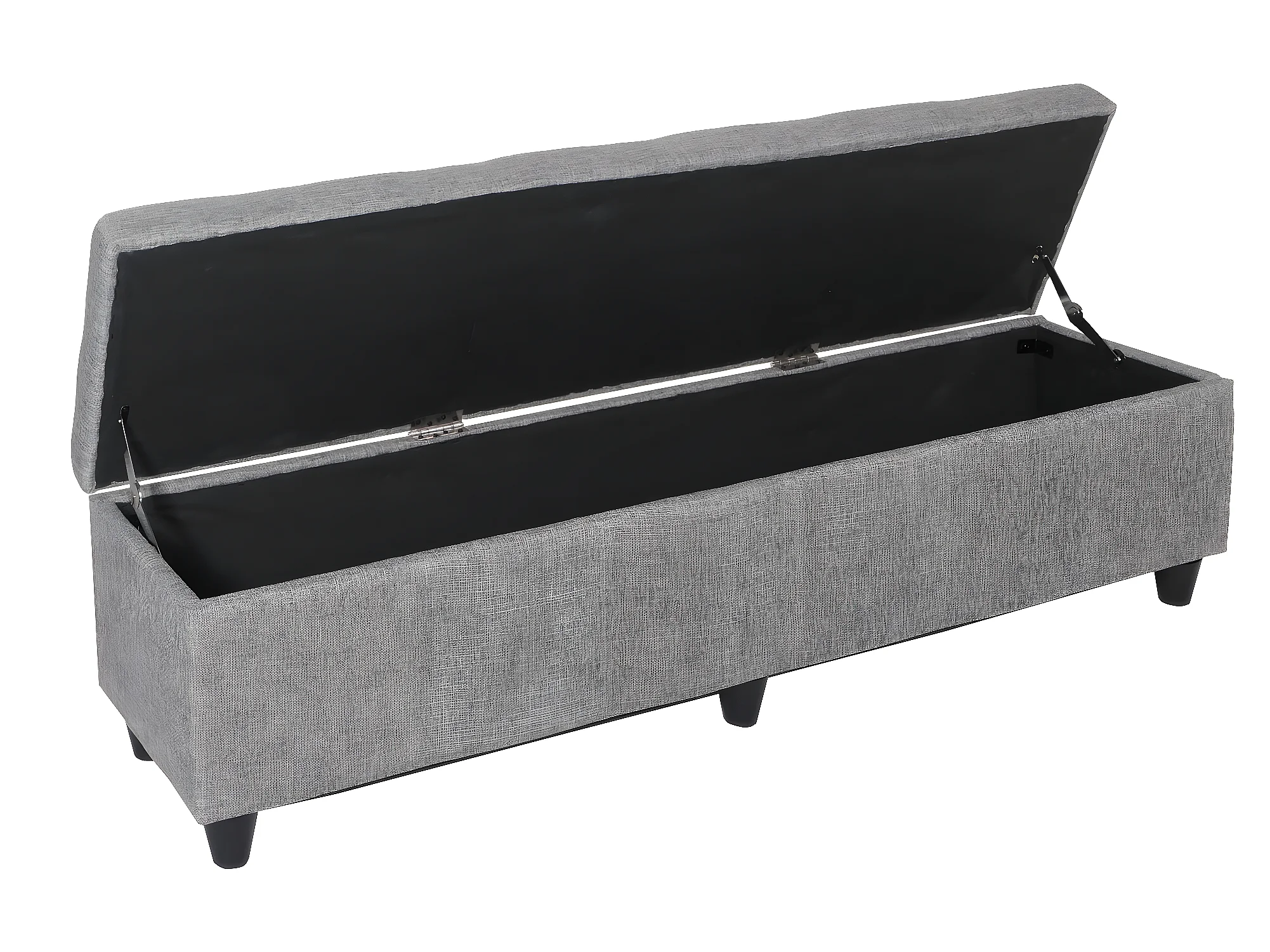 Banc banquette coffre de rangement Kriens XXL, 180x45x45cm, tissu, gris
