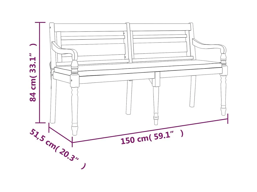 Banc Batavia avec coussin 150cm Bois de teck massif