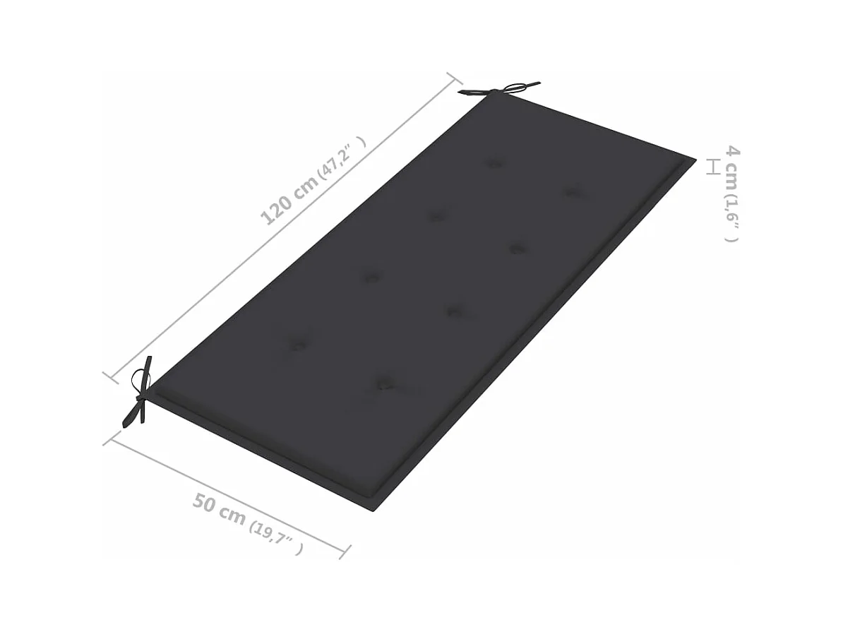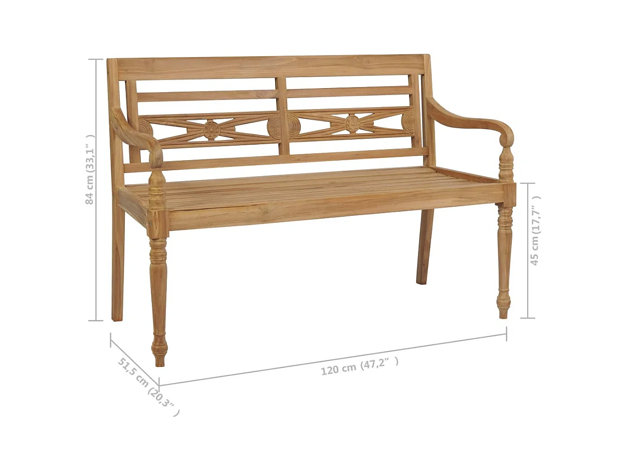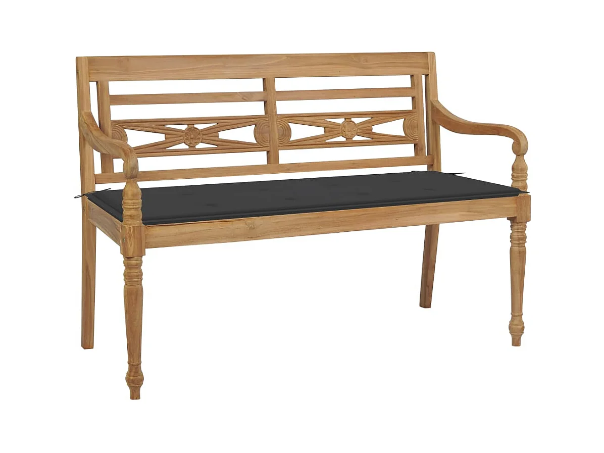Banc Batavia avec coussin anthracite 120cm Bois de teck massif