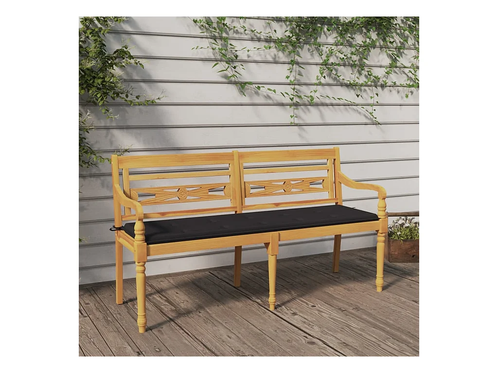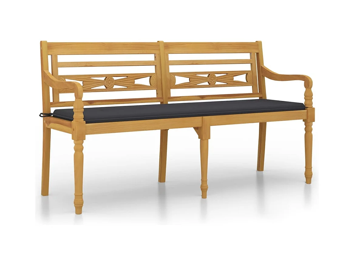 Banc Batavia avec coussin anthracite 150cm Bois de teck massif