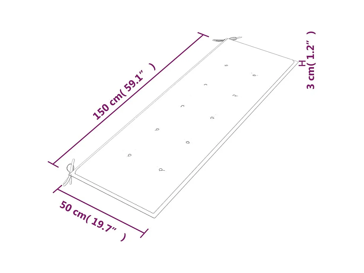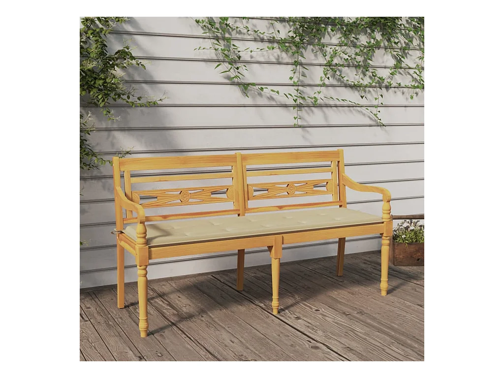 Banc Batavia avec coussin beige 150cm Bois de teck massif