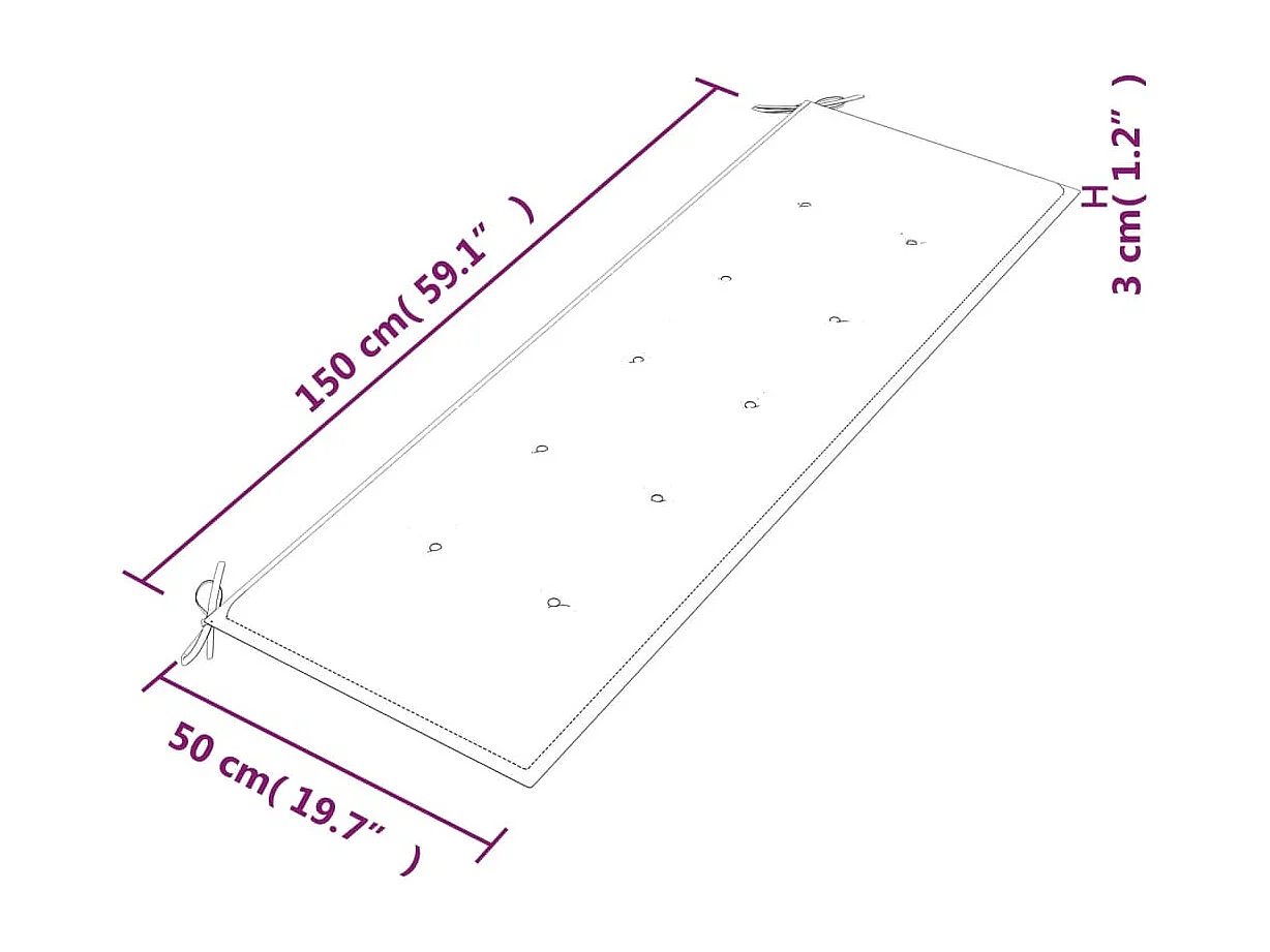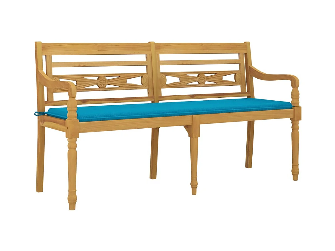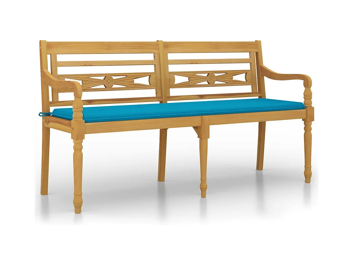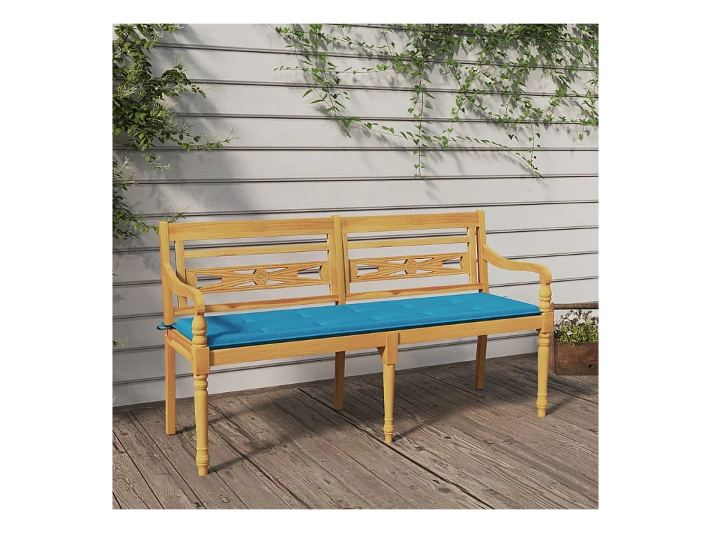 Banc Batavia avec coussin bleu 150cm Bois de teck massif