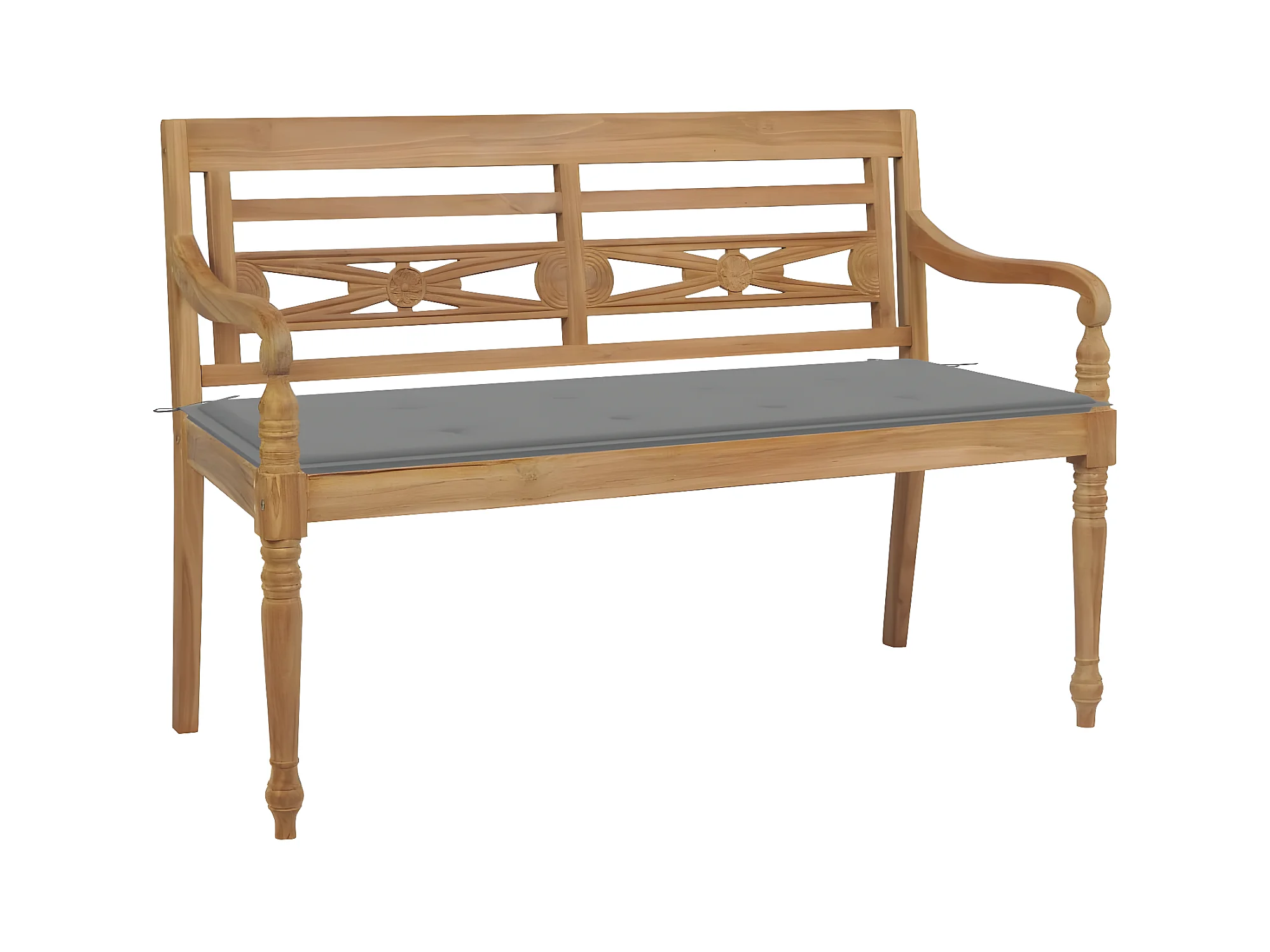 Banc Batavia avec coussin gris 120cm Bois de teck massif 2