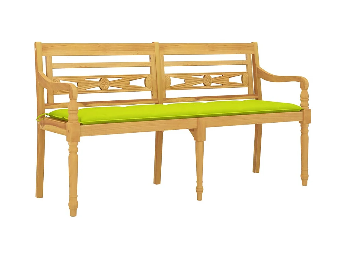 Banc Batavia avec coussin vert brillant 150cm Bois teck massif