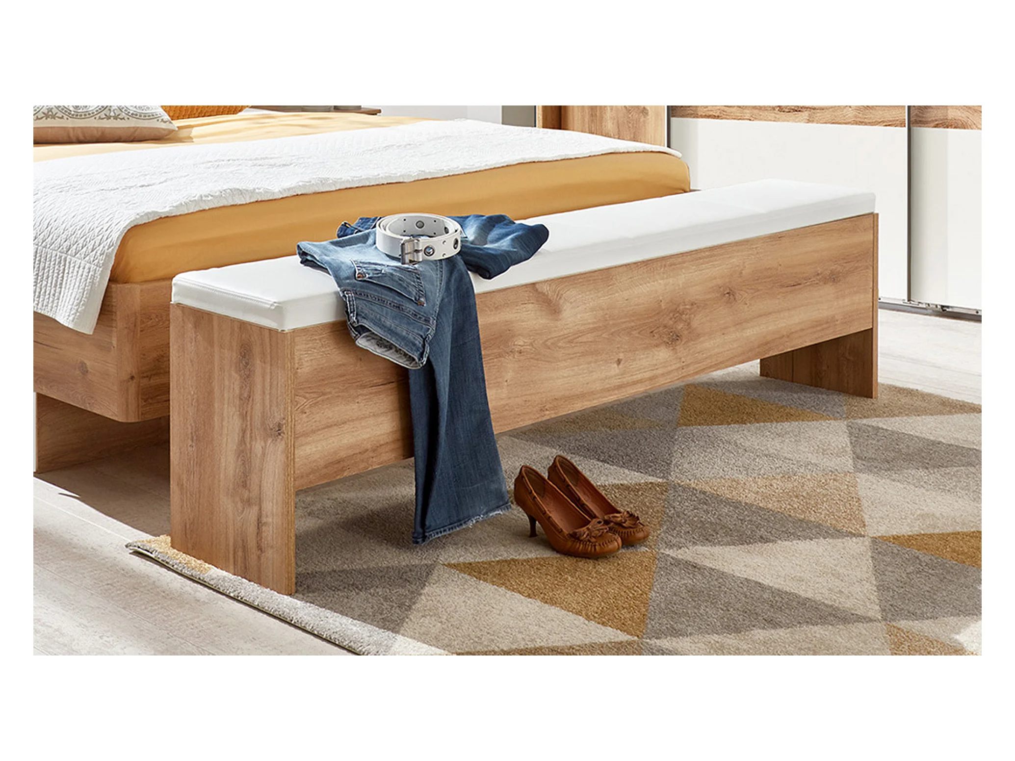 Banc bout de lit en panneaux de particules et polyuréthane, chêne/blanc - Dim : 185 x 48 x 33cm