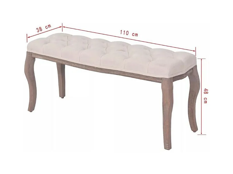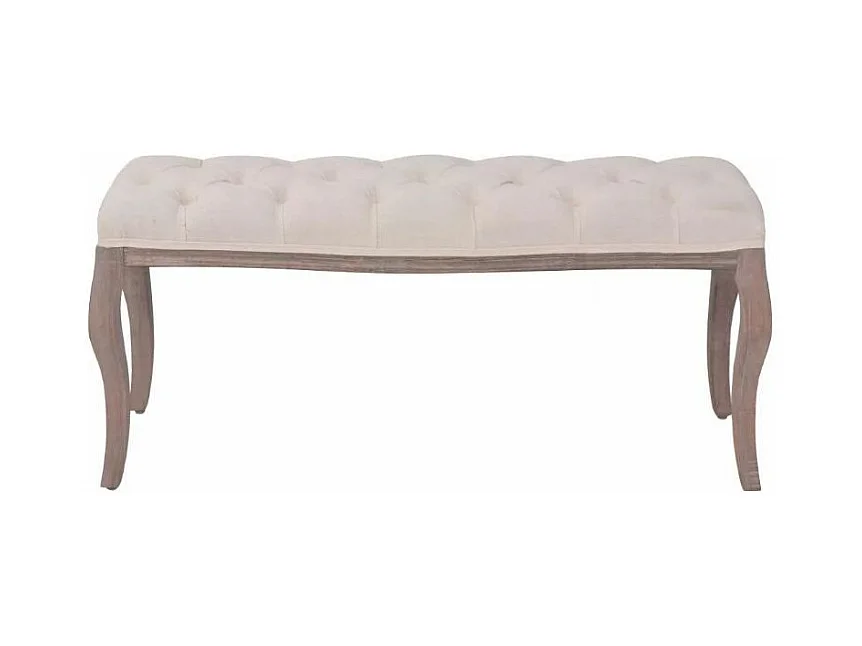 Banc capitonné lin beige et pieds bois massif clair Makin 110cm