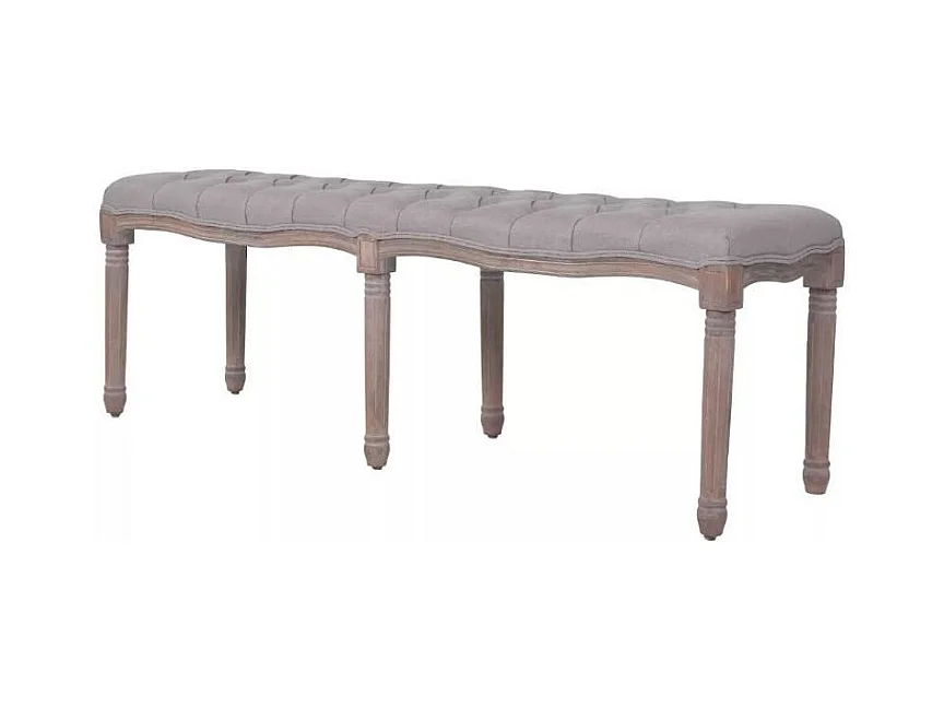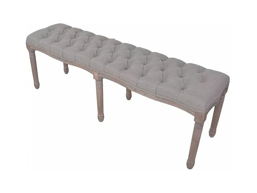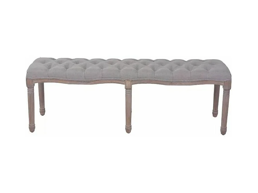 Banc capitonné lin gris et pieds bois massif clair Makin 150cm