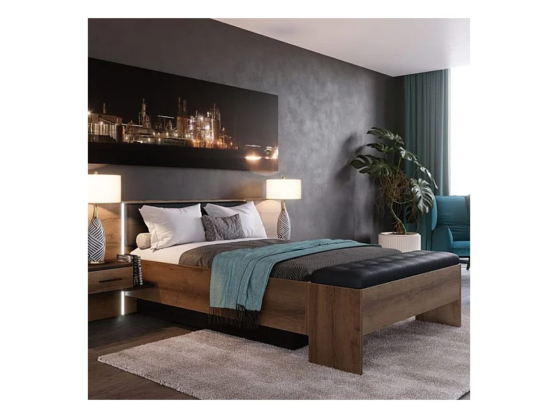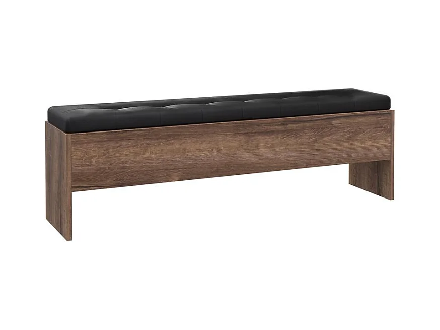 Banc Coffre 185 cm Décor Chêne Foncé Assise Capitonnée Noir - RIVIERA