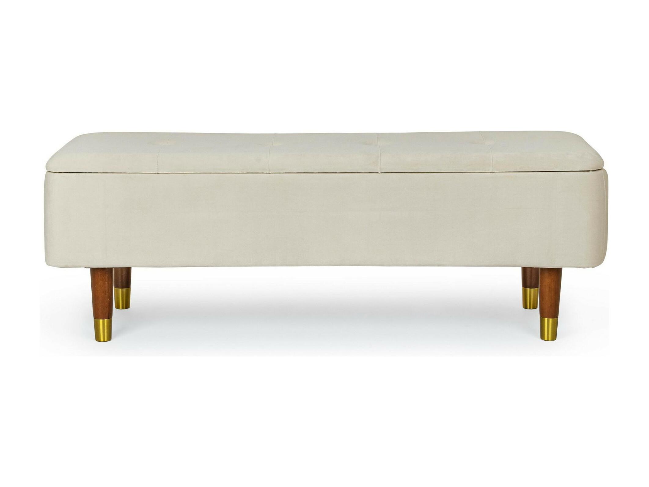 Banc coffre 2 places en velours et piétement en bois - RIKA