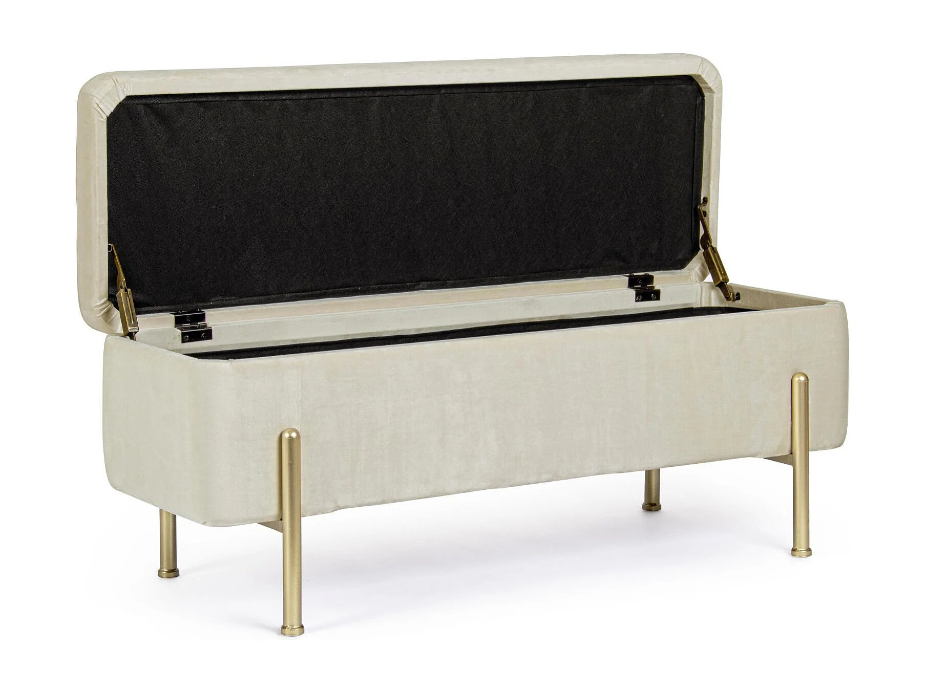Banc coffre 2 places en velours et piétement or - NINA