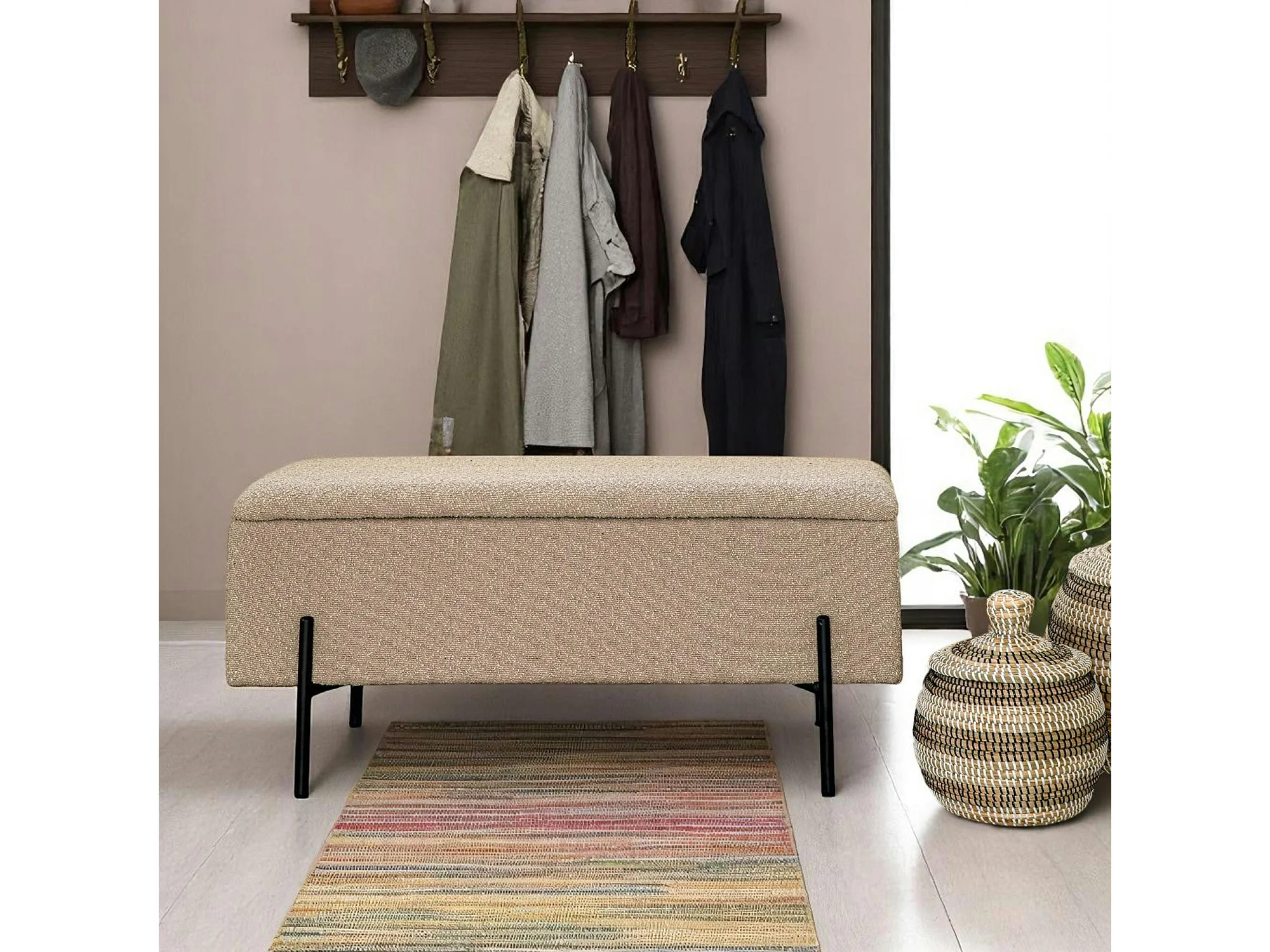 Banc coffre beige en tissu bouclette BRUGES