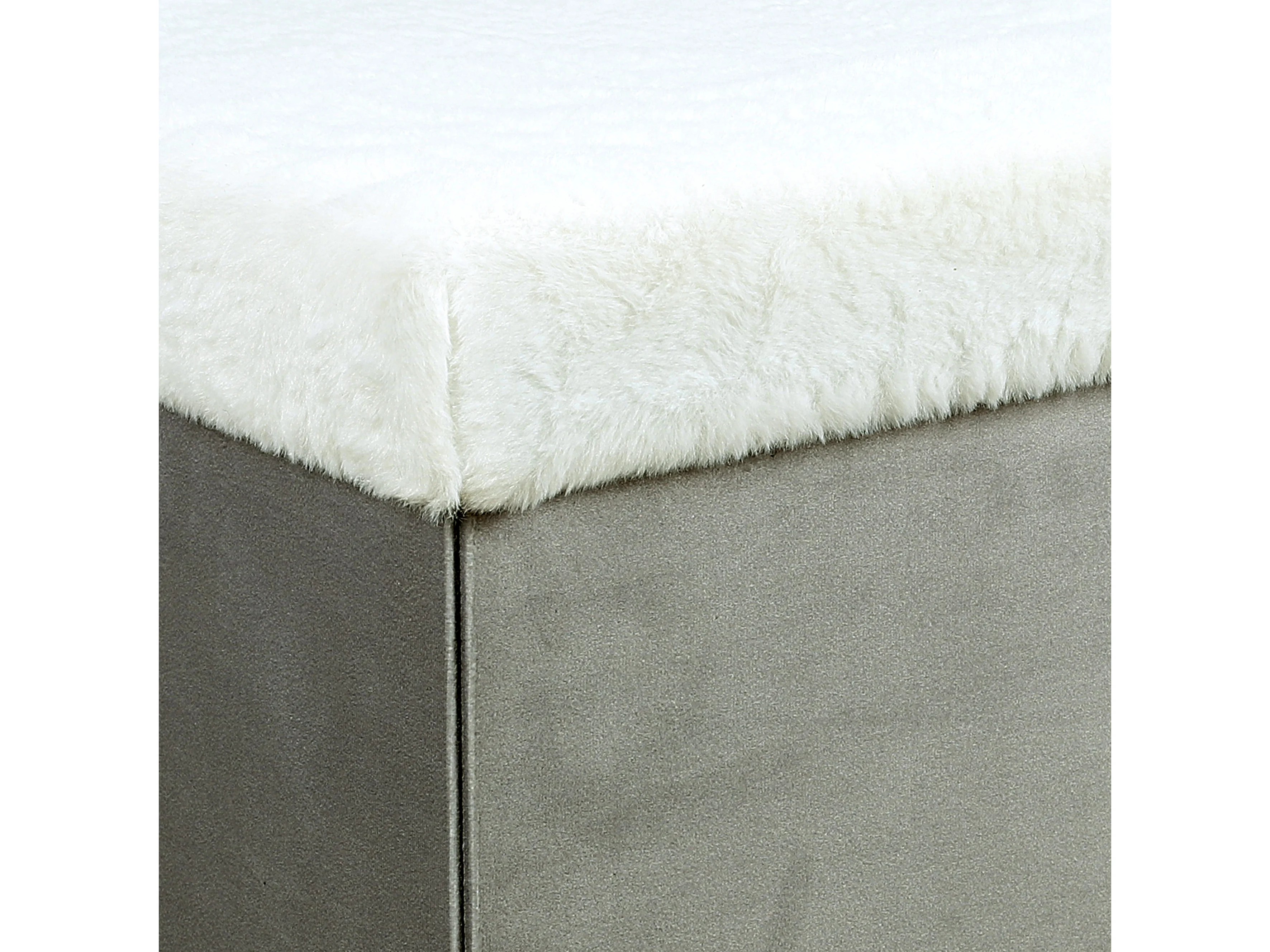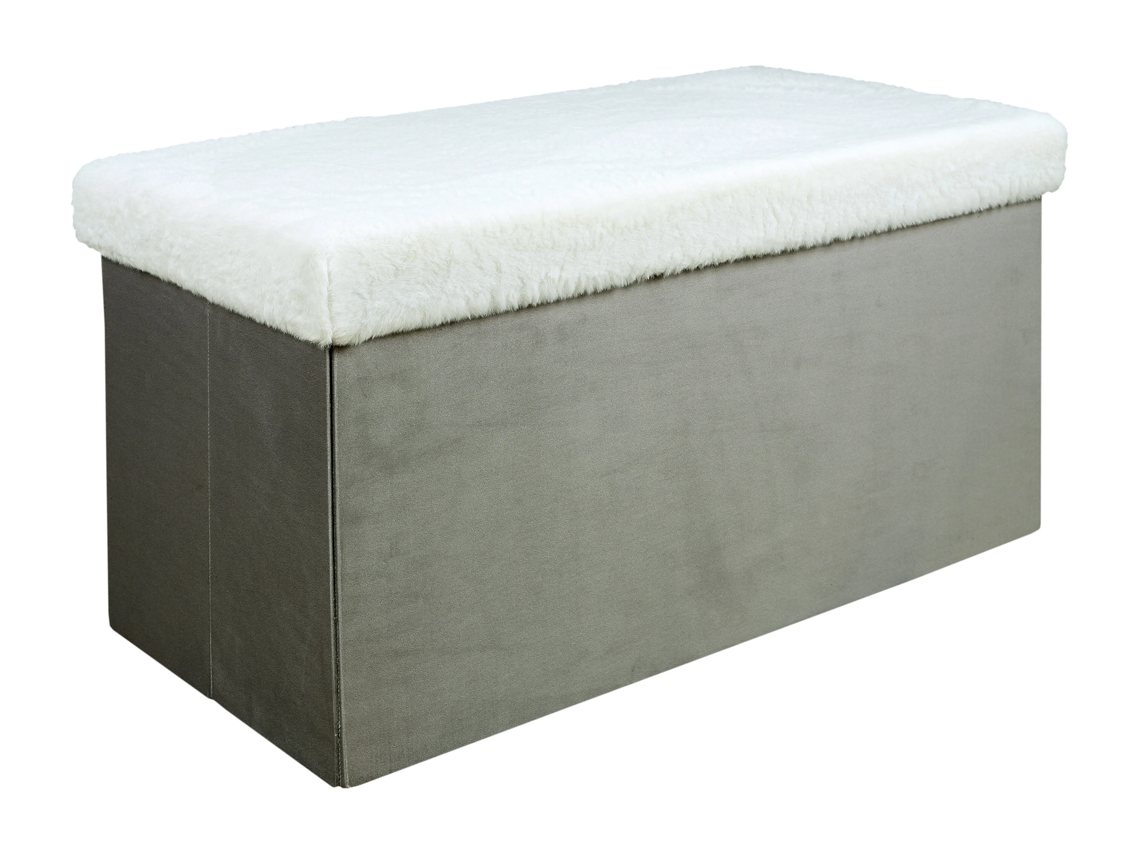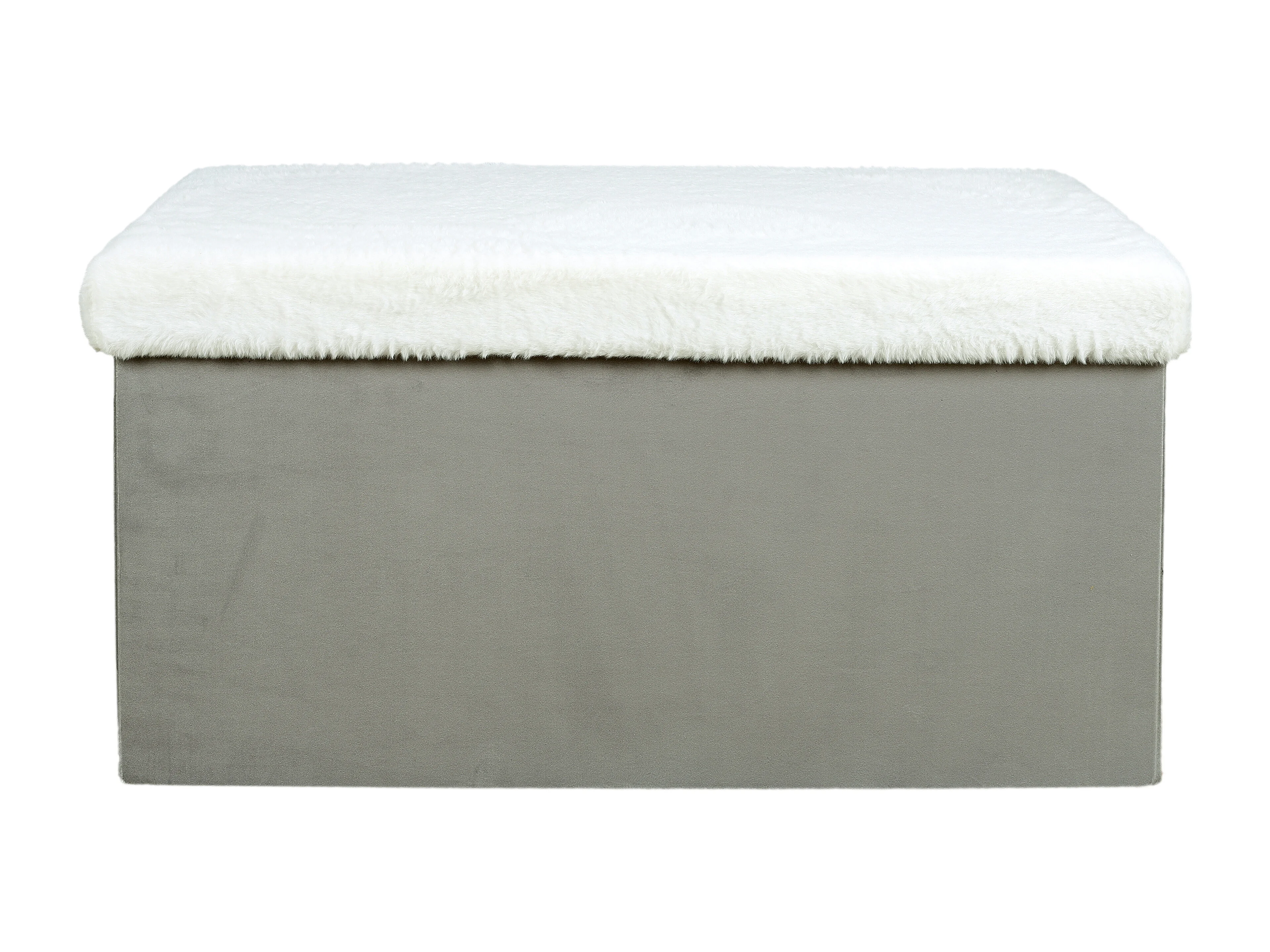 Coffre Banc Pliable Gris Imitation Fourrure Leo Gris, Blanc